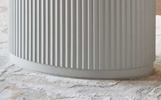 The Austin white marbled ceramic fluted 6 seater dining table combines sculptural beauty with practical durability. Its striking fluted pedestal base creates visual interest while maximising legroom for comfortable dining. The oval ceramic top, with its elegant white marble effect, resists scratches and heat, making it perfect for everything from weeknight dinners to weekend entertaining.