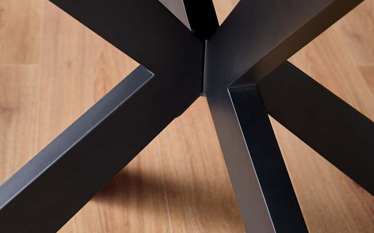 - Striking starburst pedestal base in black metal