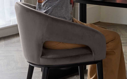 Thoughtfully designed for those long dinner parties that run late, the Heath mocha plush velvet and black wood dining chair brings comfort and sophistication to every gathering. With its generous proportions, high supportive back and gently scooped arms, this is where conversations linger and moments matter. The rich mocha velvet invites you to settle in whilst dark wood legs ground the design with understated elegance.