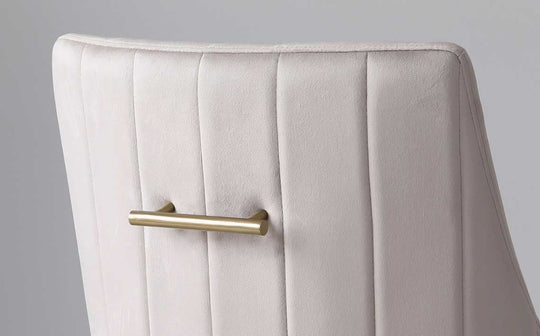 Make every meal feel like an occasion with the Juliana champagne velvet dining chair. Sold in pairs, these sophisticated seats combine plush velvet upholstery with brushed brass accents for a look that's both luxurious and liveable. The gently curved backrest with integrated handle detail creates visual interest, while the cushioned seat ensures comfort through long dinners and lingering conversations.