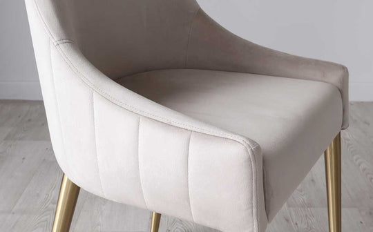 - Champagne velvet upholstery with textured detailing
