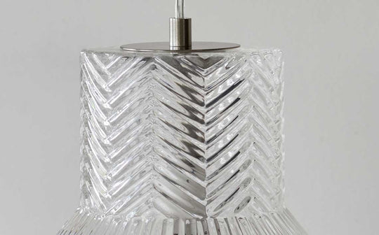 - 3 hand-blown clear glass shades with textured patterns