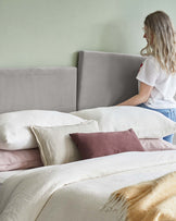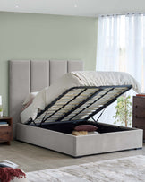 Transform your bedroom into a sophisticated retreat with the Penelope super king ottoman bed. Upholstered in sumptuous light grey recycled velvet, this statement piece features a striking 4-panel headboard that can be arranged vertically or horizontally to suit your space. Beyond its contemporary style, the spacious ottoman storage keeps bedding and essentials organised, while sprung slats ensure exceptional comfort night after night.