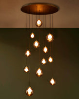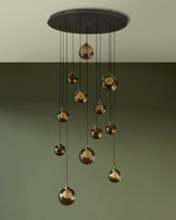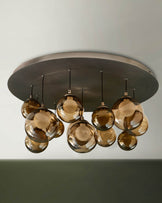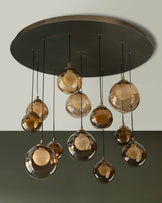 Transform your dining space with the Riley mocha glass 12 LED pendant light. Twelve hand-blown glass orbs in warm mocha tones cascade from an extra-large ceiling rose, creating a stunning focal point. With fully adjustable cables, you can customise the drop height to suit your space perfectly - whether that's above your dining table or as a statement piece in your living room.