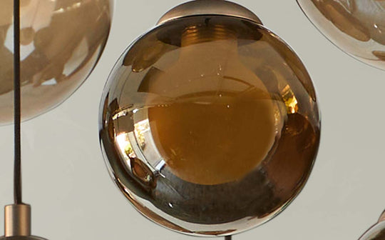 Transform your dining space with the Riley mocha glass 12 LED pendant light. Twelve hand-blown glass orbs in warm mocha tones cascade from an extra-large ceiling rose, creating a stunning focal point. With fully adjustable cables, you can customise the drop height to suit your space perfectly - whether that's above your dining table or as a statement piece in your living room.