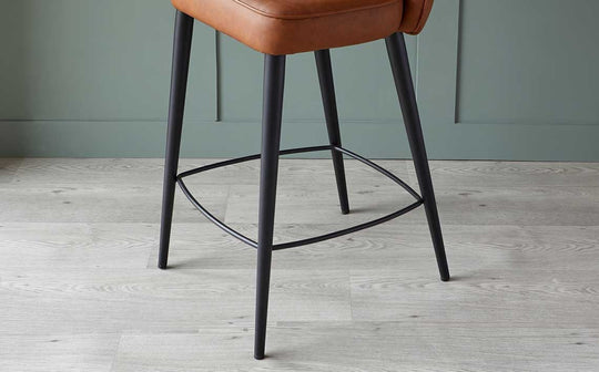The Serena tan faux leather bar stool brings sophisticated style to your kitchen island or breakfast bar. Quilted chevron detailing creates visual interest from every angle, while rich tan Durosoft faux leather offers the luxe look of genuine leather with practical wipe-clean convenience. The cushioned seat and backrest ensure comfortable lingering over morning coffee or evening drinks.