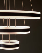 Make a statement with the Solana black metal adjustable pendant light. Three tiered concentric rings create a striking cascade effect that draws the eye upward, while integrated LED lighting casts a sophisticated glow across dining tables, kitchen islands or living spaces. The adjustable height lets you create the perfect drop for your room.