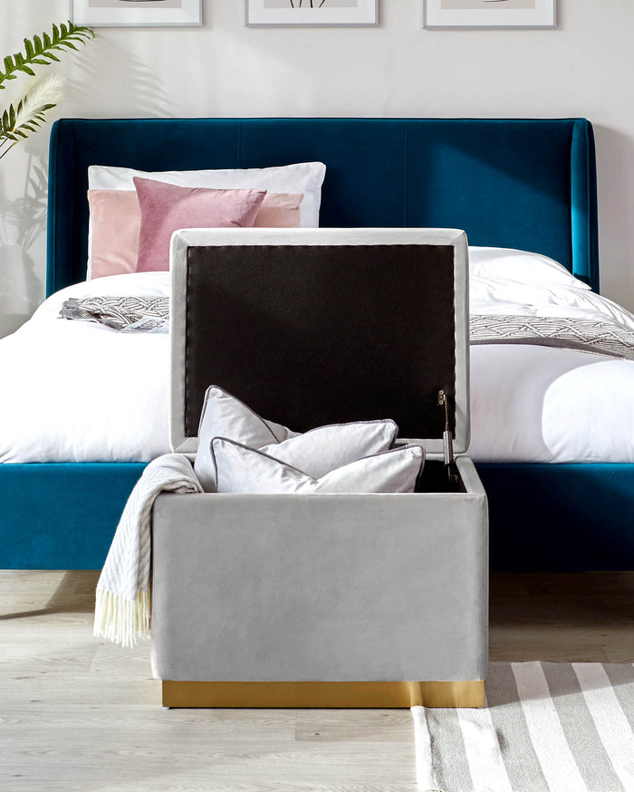 If you have space beneath a window or a room at the foot of your bed, it’s worth considering a storage bench. We sell a matching ottoman storage seat in the Amalfi range which comes in light grey, dark teal or champagne velvet. The lid lifts up using hydraulic pistons, making the movement smooth and easy to lift. Inside, there's plenty of space to store away those items you don't need every day, like spare throws or towels. If you want to go for something a little smaller, go for the Zara ottoman storage cube which comes in blush pink, light grey or navy blue – it can even double as a stool for your dressing table. The cube is a great use of space, ideal for those items you use day to day, but want to keep tucked away.