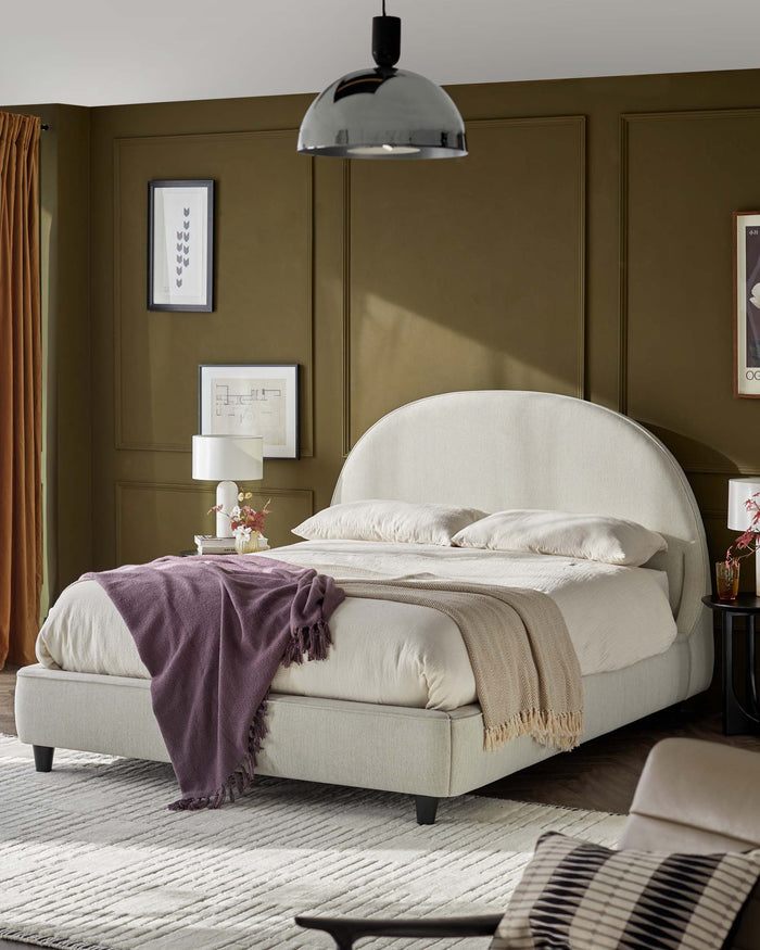 Our range of luxury headboard beds will make an impact in your room. The Lani bed, available in a natural and cream boucle, or olive green velvet, has a contemporary curved design for maximum appeal.