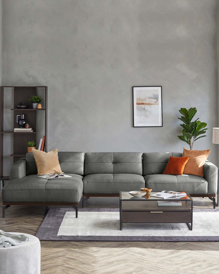 Embrace loft-style living with the contemporary Colton left hand corner chaise sofa coming in a variety of colours as well as a soft chenille fabric. Upholstered in a sophisticated and supple leather, this sofa boasts classic detailing on its seams, back, and seat cushions, adding a touch of timeless elegance to its modern design. You can also discover the Colton as a 2 seater or a 3 seater and as a corner sofa. The Colton features concealed headrests that can be effortlessly raised for added comfort and support, perfect for relaxing evenings. Its sleek, linear design with segmented cushions adds to its contemporary appeal.