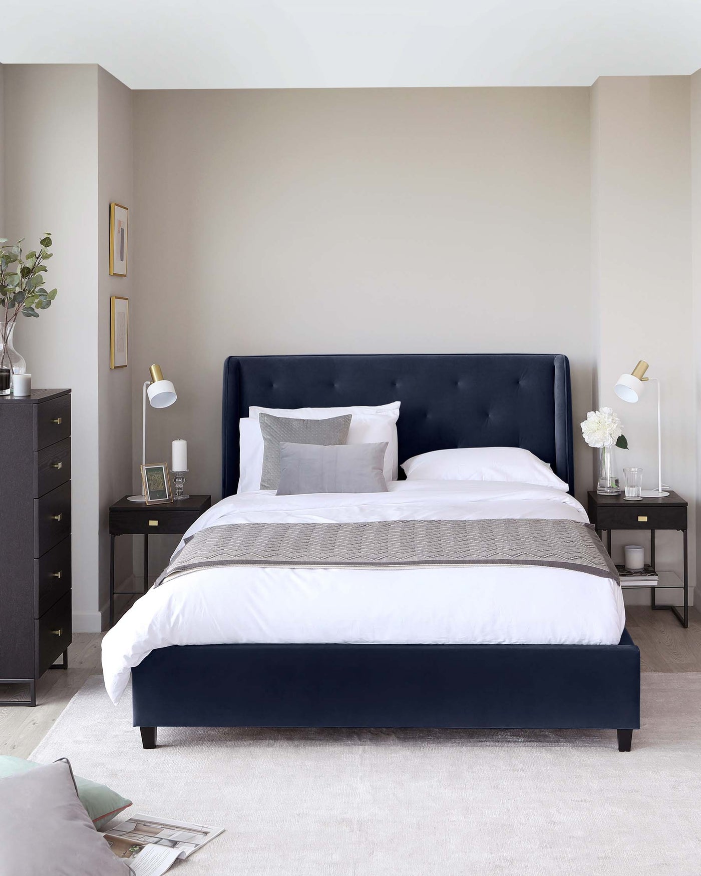 - How can I style my blue king size bed to create different looks?A blue king-size bed offers a versatile base for various bedroom styles. For a luxurious feel, layer the bed with crisp white sheets, a plush duvet, and a collection of textured cushions in shades of silver, grey, or cream. A faux fur throw adds warmth and opulence. If you prefer a coastal vibe, incorporate natural textures like linen or cotton bedding in white or beige, and add cushions with nautical stripes or subtle blue patterns. A woven rug and driftwood accents complete the look. For a modern and minimalist style, stick to a simple colour palette of blue, white, and grey. Opt for a sleek duvet cover and a few carefully chosen cushions. A geometric patterned rug and metallic accents add a touch of contemporary flair. Remember to choose bedside tables and lighting that complement your chosen style. For more information visit our blog post.