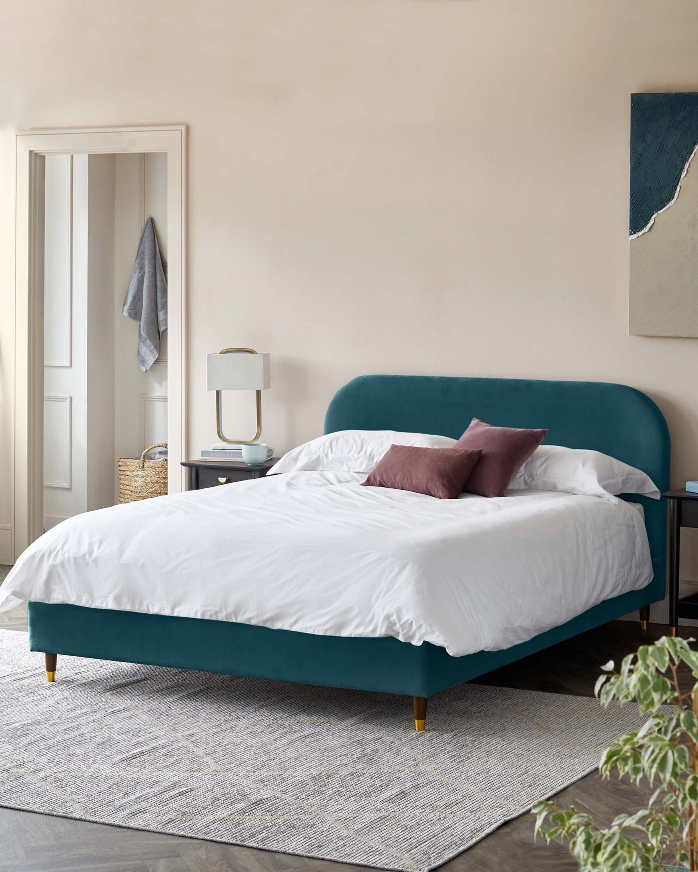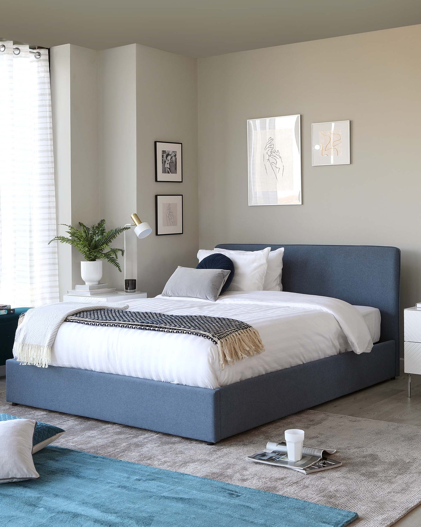 - What style and size of bedside tables complement a blue double bed best?A blue double bed pairs beautifully with various bedside table styles and sizes. For a cohesive look, consider bedside tables in a complementary colour like a lighter shade of blue, a soft grey, or a natural wood finish. If your style is modern, choose sleek, minimalist tables with metal legs or a marbled ceramic finish. A traditional blue bed might suit bedside tables with classic detailing or perhaps a painted finish. For a luxurious feel, opt for mirrored or velvet-upholstered tables. Size-wise, ensure the tables are proportionate to the bed - ideally, the tabletop should be roughly level with the top of the mattress. Two smaller tables can flank the bed, or one larger table can be used if space is limited. Measure the available space beside your bed to determine the appropriate dimensions.