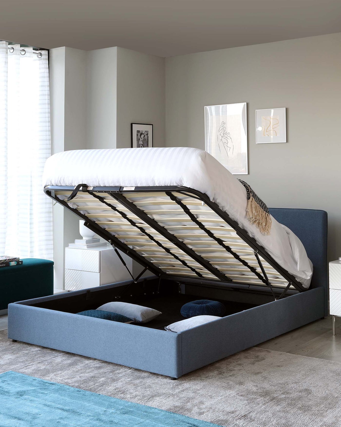 Practicality is also a key feature of our range, with many models offering generous hidden storage within the base. This makes them an ideal choice for those seeking to maximise their bedroom space. Whether you're drawn to the sleek silhouette of the Monica or the luxe feel of the Lenora, our blue double bed range caters to a variety of tastes and needs.