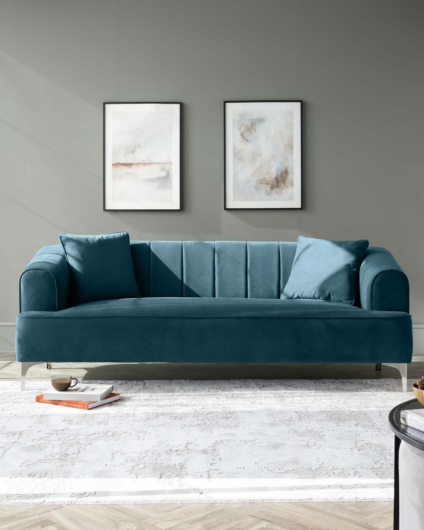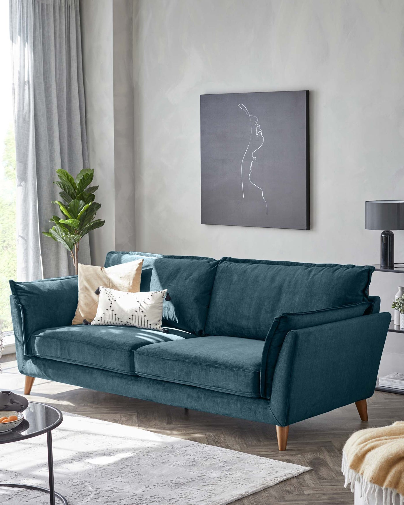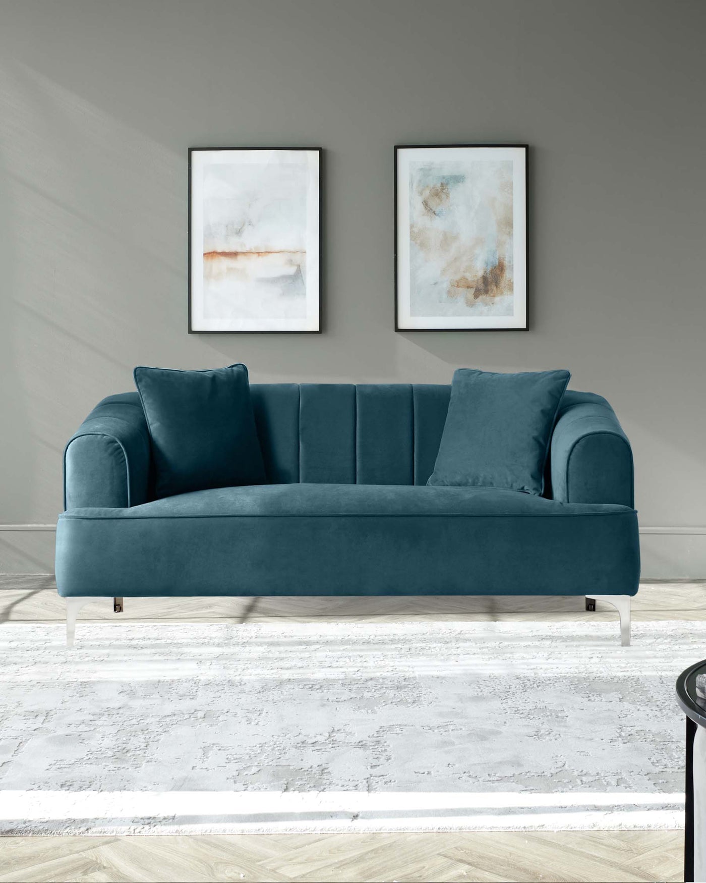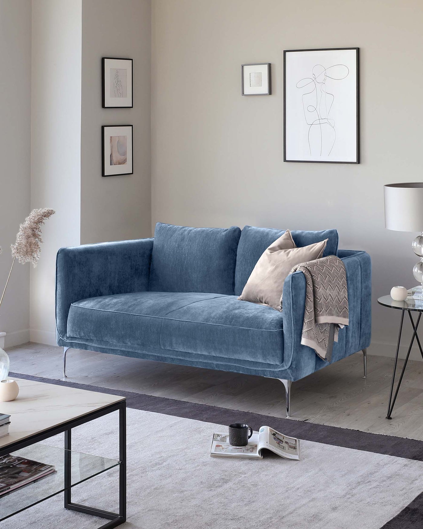 - How can I style a blue sofa in my living room?A blue sofa offers versatile styling options. For a sophisticated look, pair a navy blue velvet sofa with warm metallic accents like gold or brass in your lighting and accessories. Lighter blues create a calming atmosphere and work well with natural materials like wood and rattan. Scatter cushions in contrasting textures and patterns, such as geometric prints or faux fur, can add depth and visual interest. A neutral rug can tie the look together and define the seating area. Consider the shade of blue and choose complementary colours for your walls and other furniture to create a cohesive and stylish living room. For more information visit our blog post.