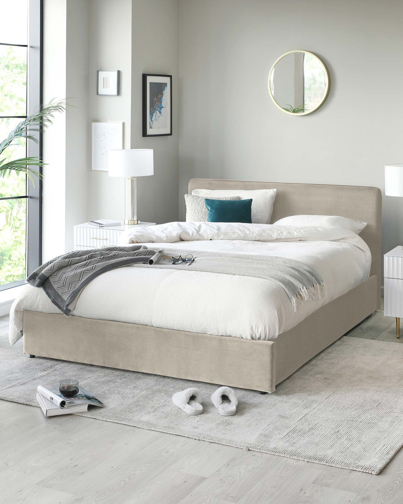 Upholstered in soft-touch fabric or plush velvet, our pieces are designed with longevity in mind. Colour options span from neutral creams and light greys to richer tones like champagne and blush pink, offering a wide variety to cater to your personal taste.