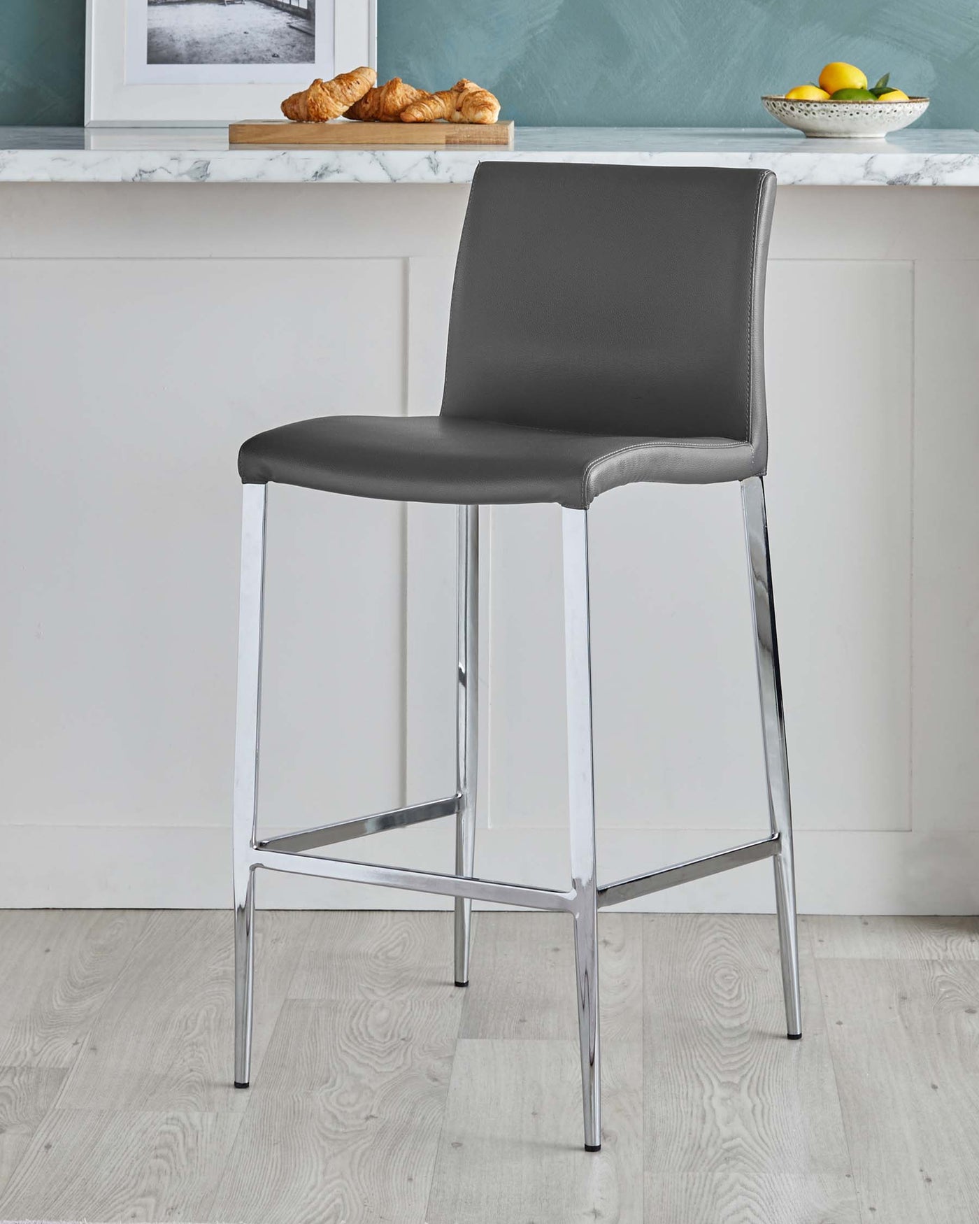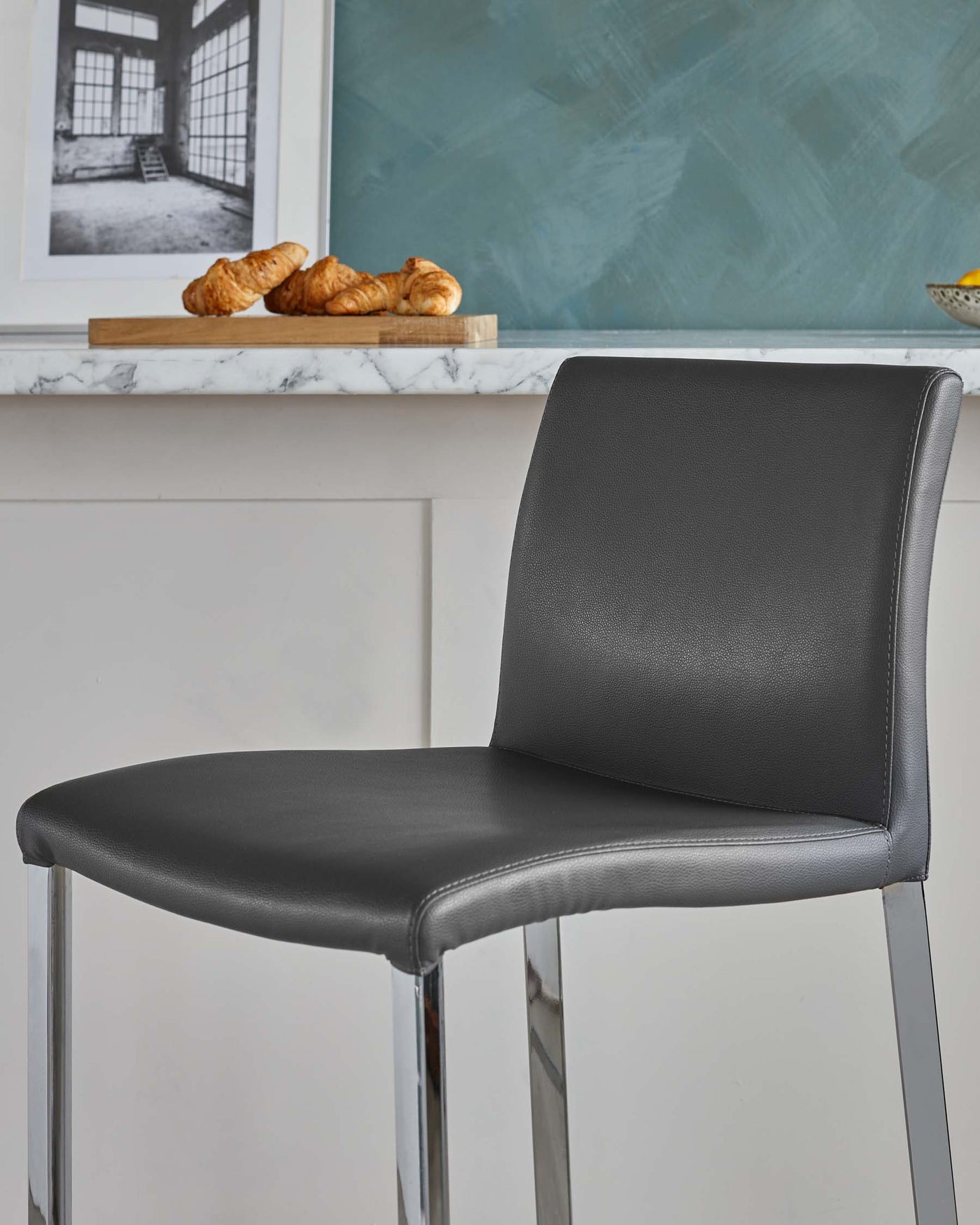 The collection includes options with swivel bases for easy movement, and some models also feature a handy gas lift mechanism for adjustable seating height. Available in a palette of light to dark greys, these stools can seamlessly integrate into your existing decor. As part of the range, stools with backrests offer additional comfort, encouraging a more sociable seating environment. This collection of faux leather bar stools caters to a variety of tastes and functional needs.