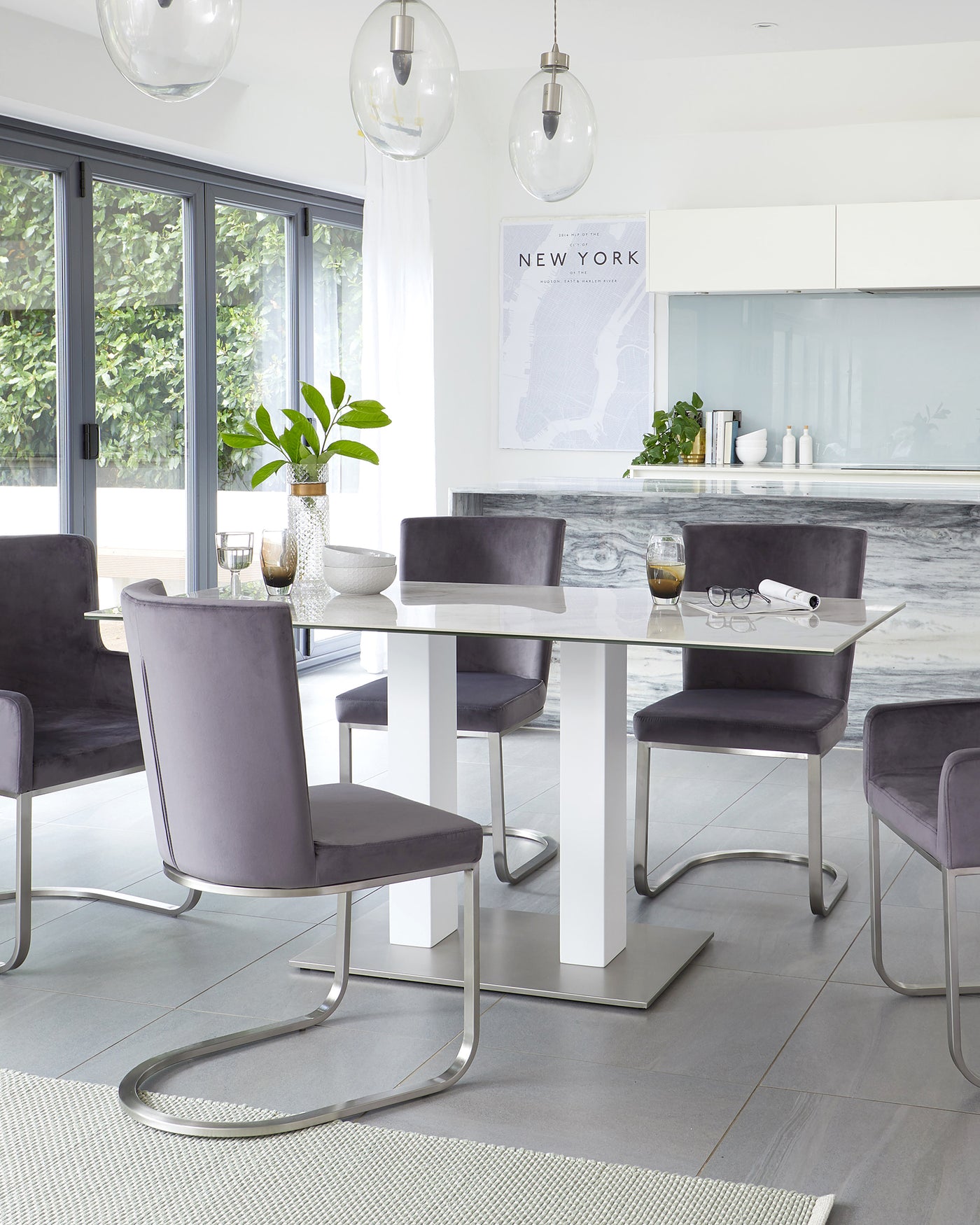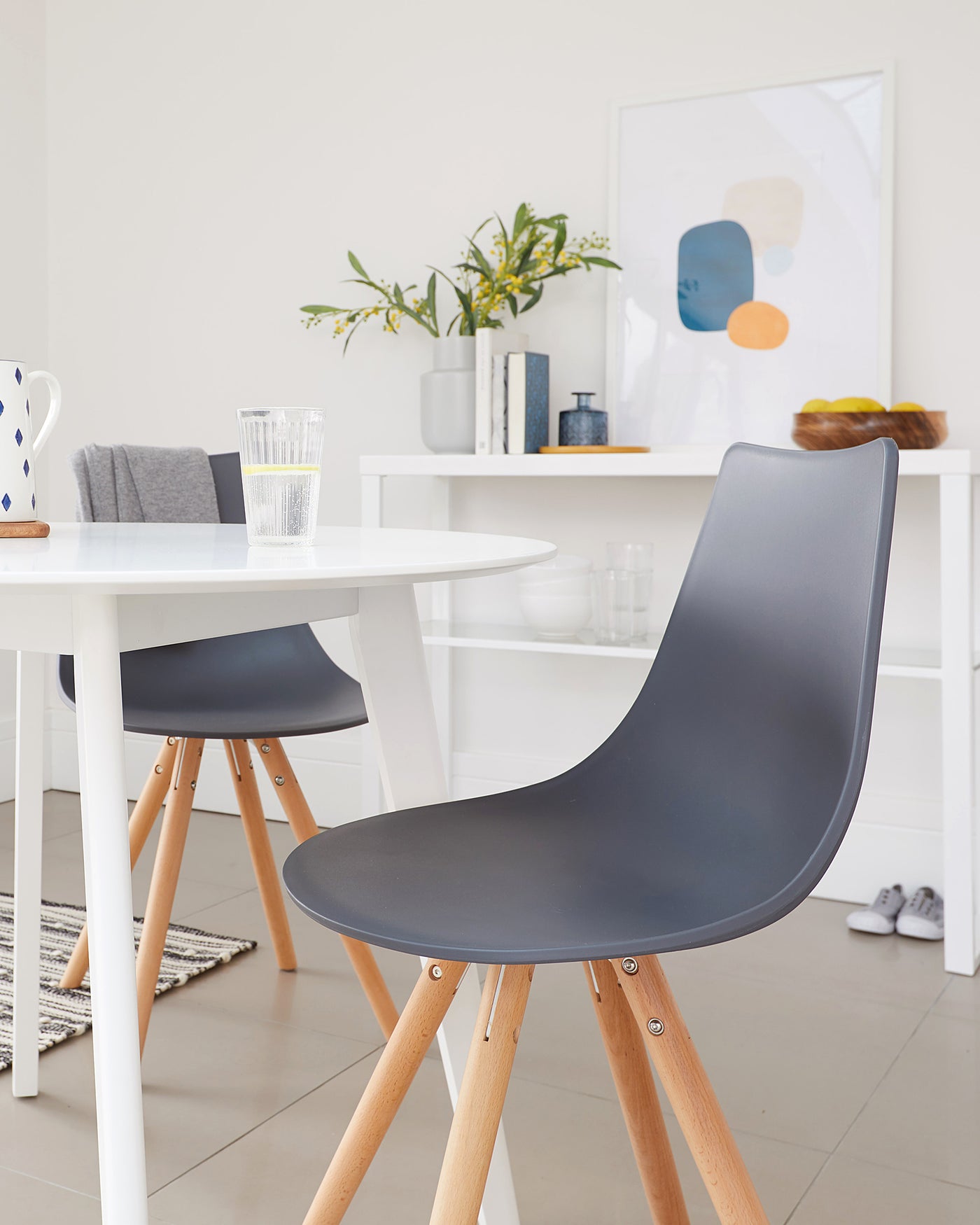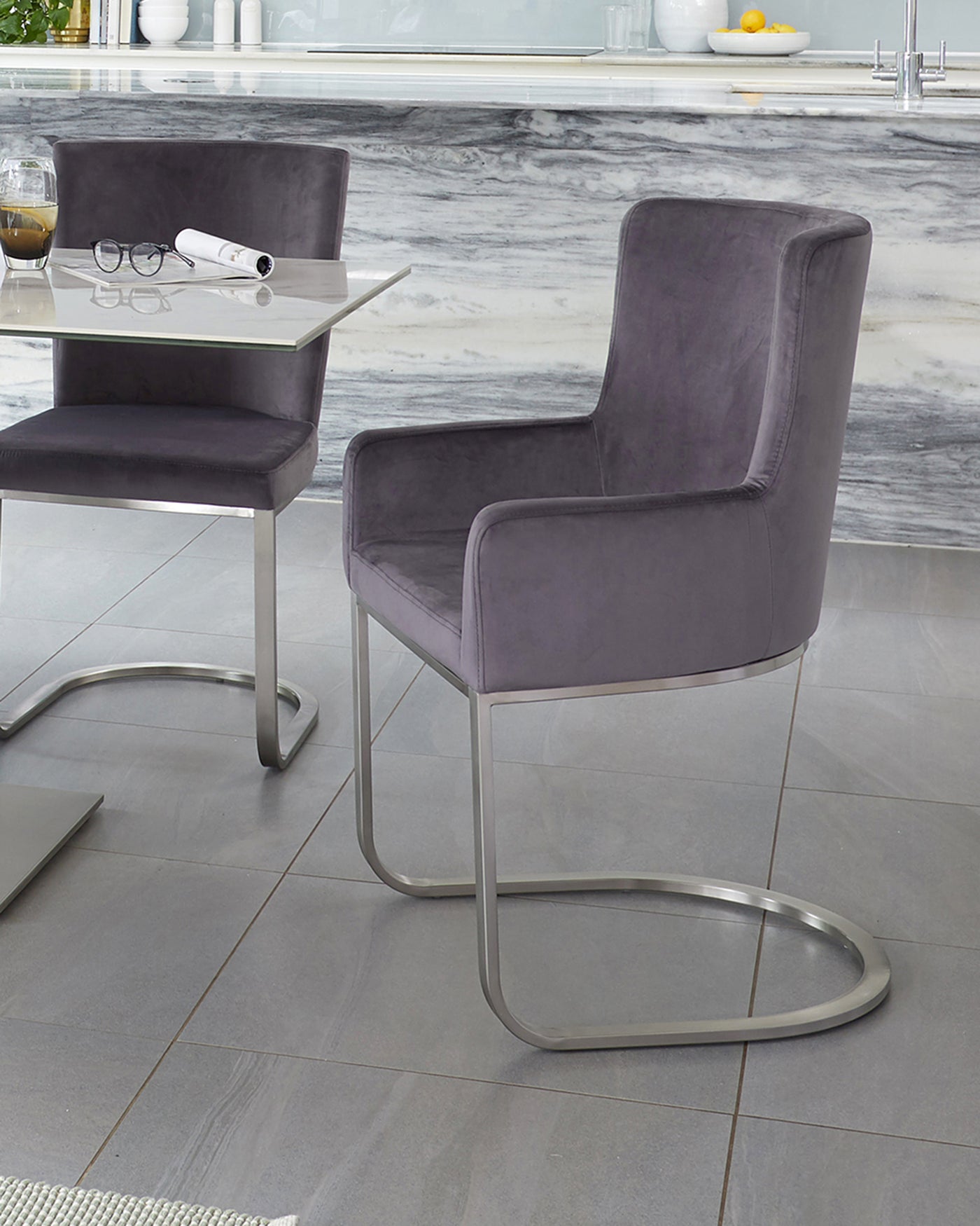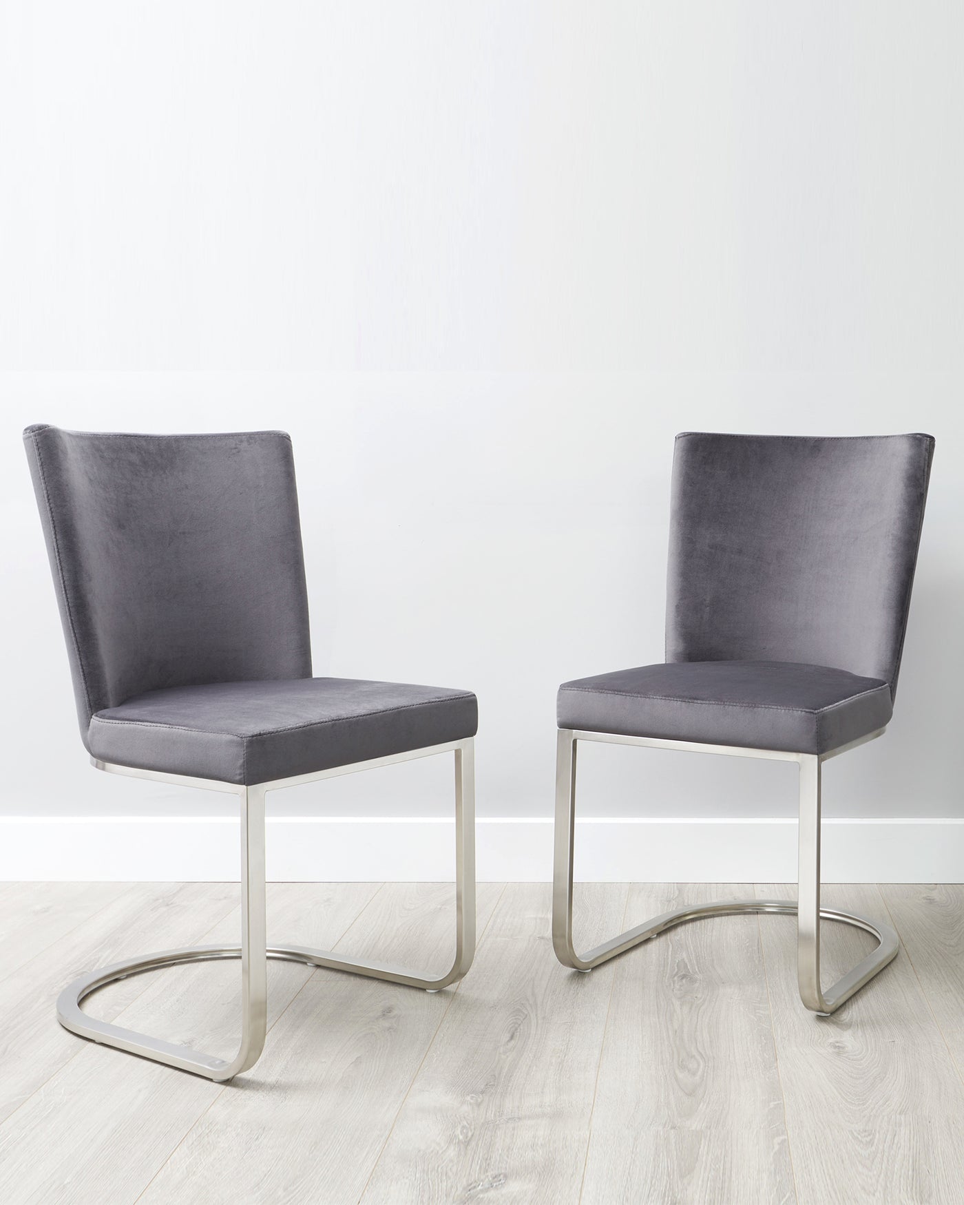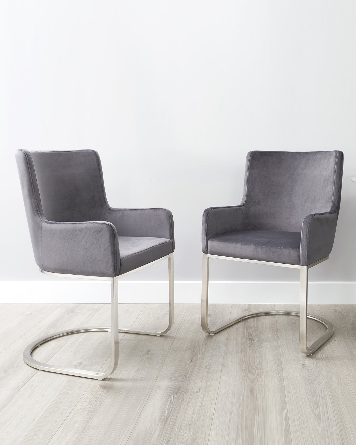 - What should I consider when choosing grey dining chairs?When choosing grey dining chairs, consider the specific shade - light grey creates an airy feel, while dark grey adds a touch of drama. Think about the material: grey faux leather is easy to clean, while grey velvet adds a luxurious feel and grey fabric suits a more relaxed setting. If you have an open-plan living space, ensure the grey chairs complement your existing furniture. Consider the legs/base material and colour; metal or wood in black or chrome can create different looks. Finally, check dimensions and weight capacity to ensure they fit your table and guests comfortably. For more information visit our blog post.