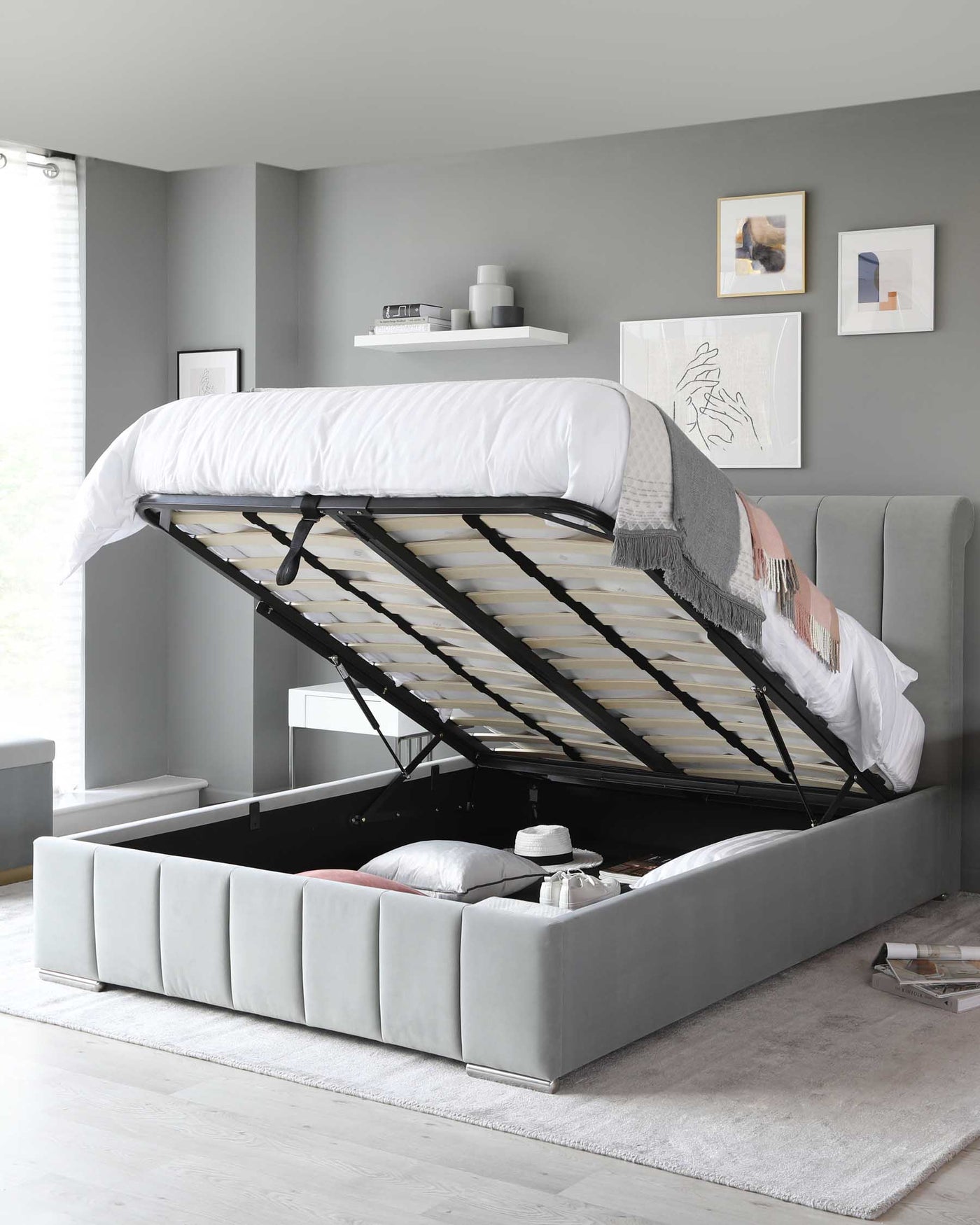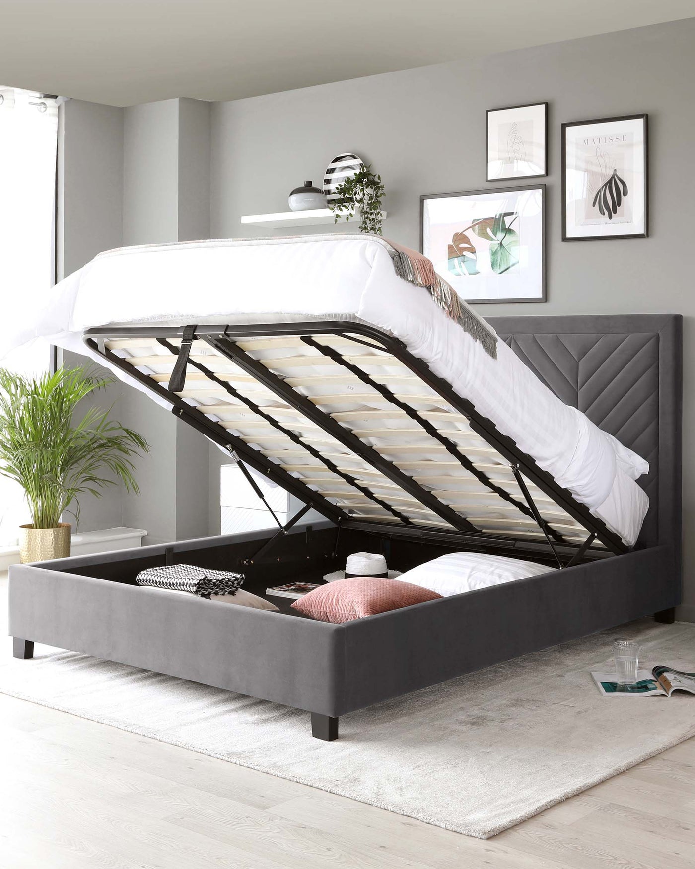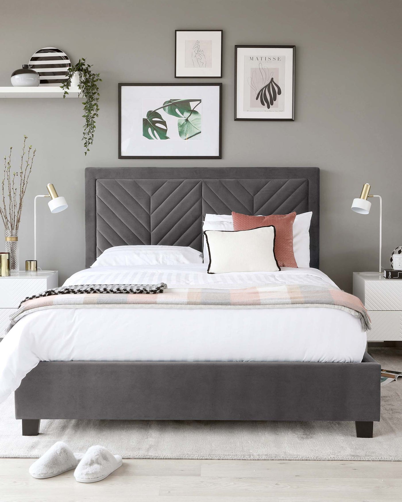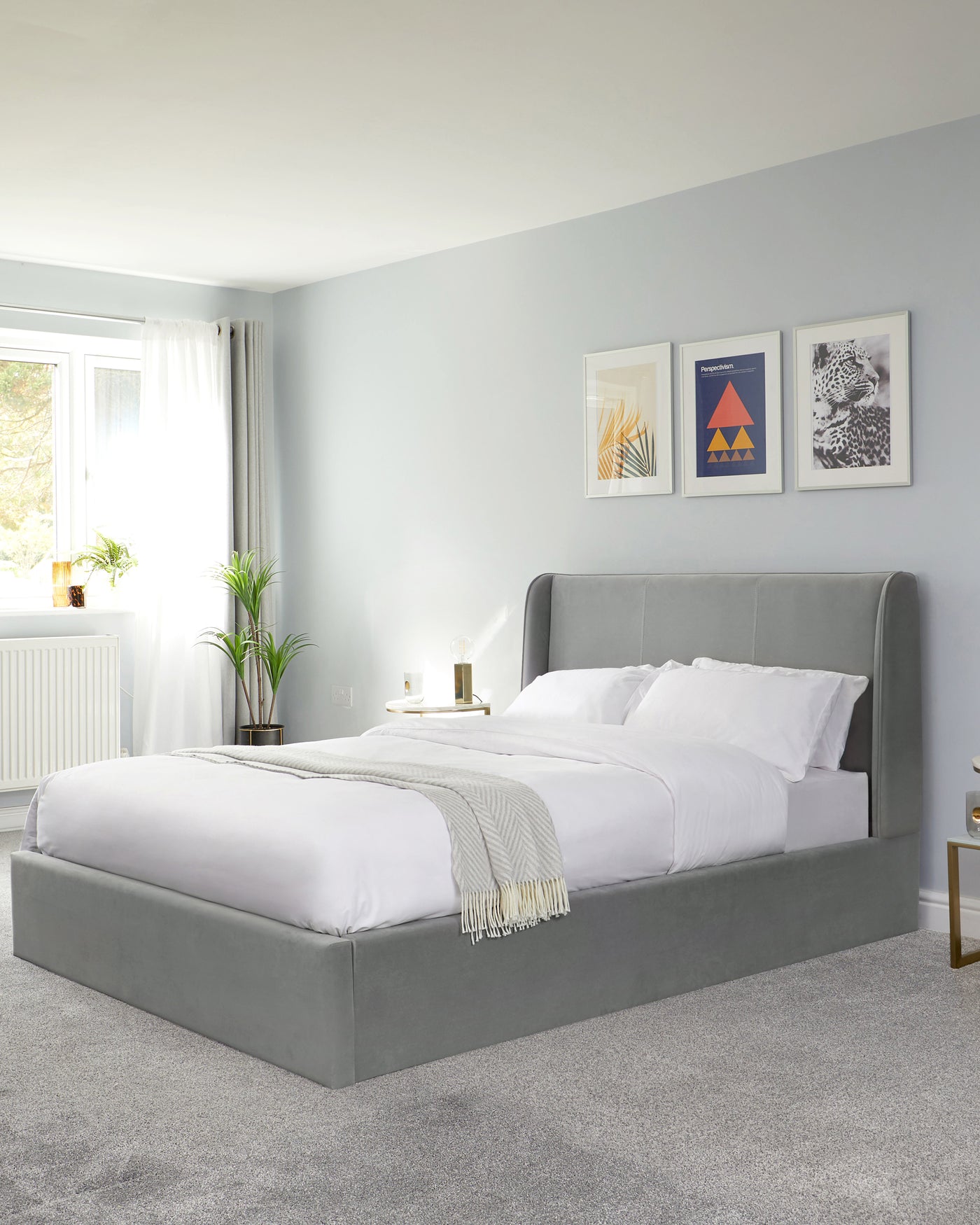 - How can I style my grey king-size bed to create different looks?A grey king-size bed offers a versatile base for various styles. For a luxurious feel, layer on plush velvet cushions and throws in jewel tones like emerald or sapphire, complemented by a soft, textured rug. A minimalist look can be achieved with crisp white linen, a light grey throw, and a simple patterned cushion. Introduce warmth with natural wood bedside tables and a woven pendant light. Alternatively, embrace a contemporary style with geometric print cushions in monochrome or blush pink, paired with sleek metal bedside lamps and a large abstract artwork above the bed. Consider adding an ottoman at the foot of the bed for extra seating and storage, coordinating its upholstery with the overall colour scheme. For more information visit our blog post.