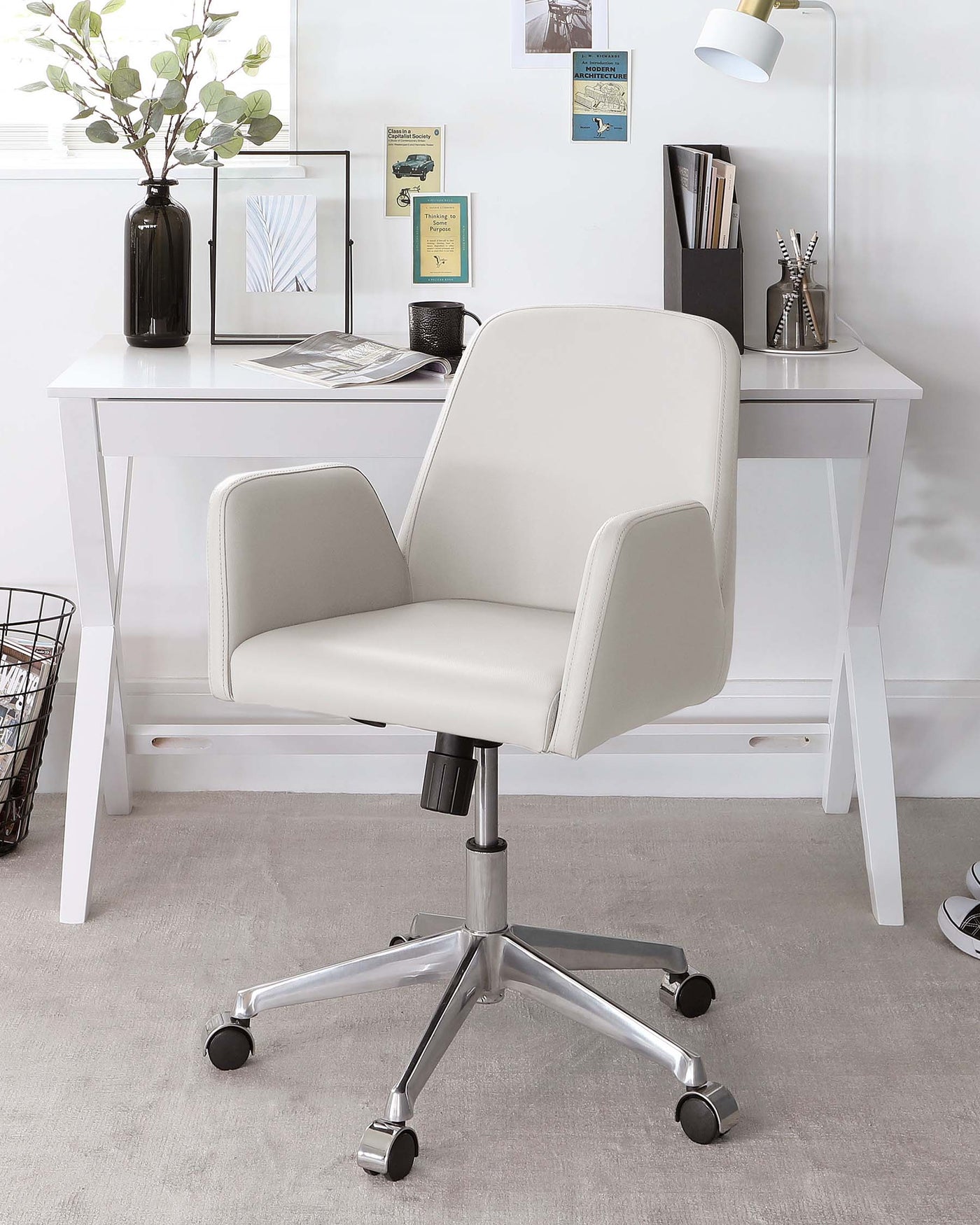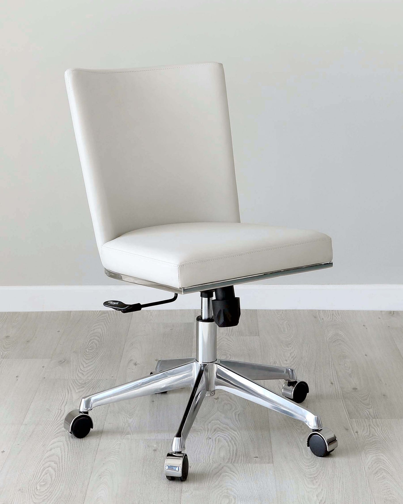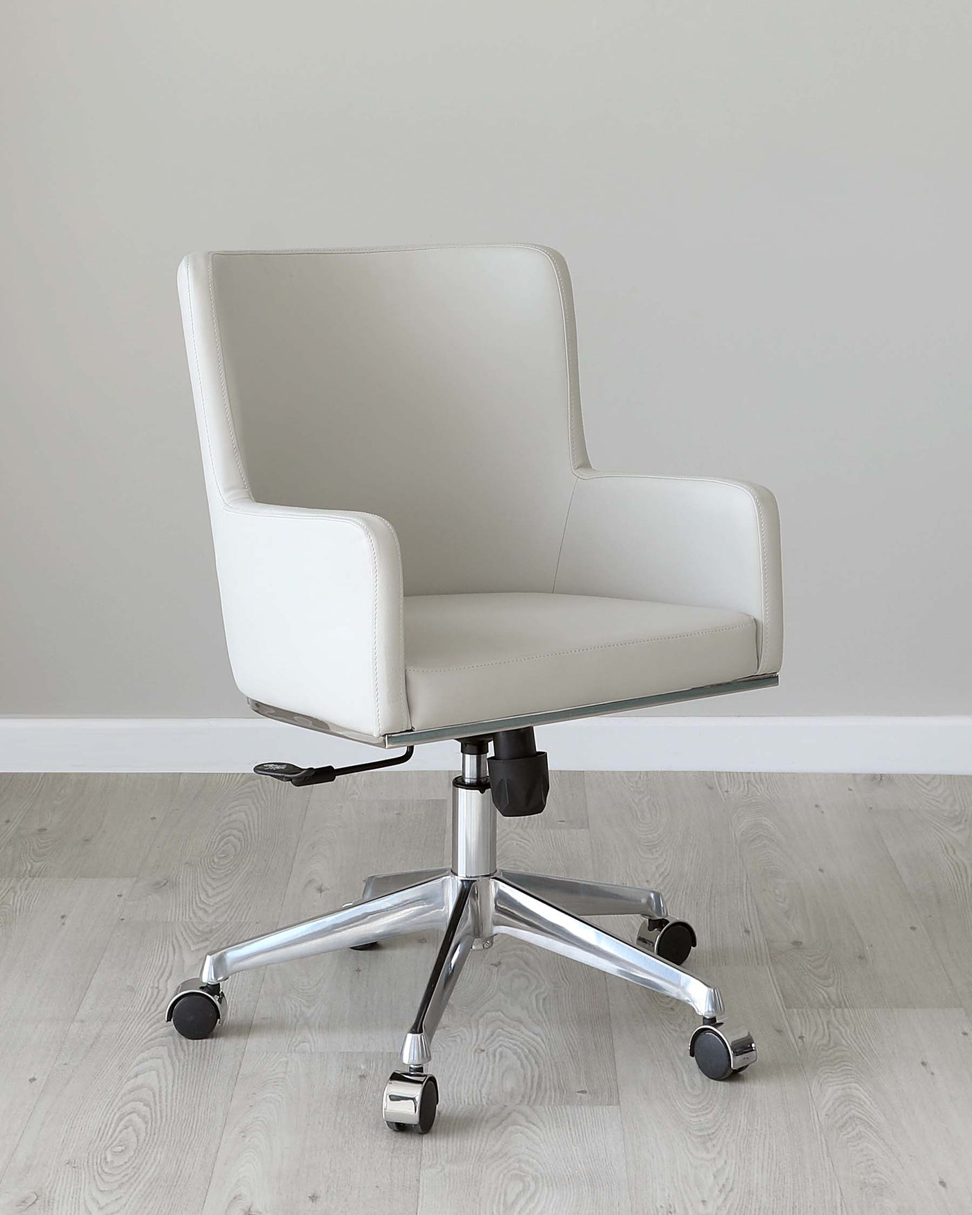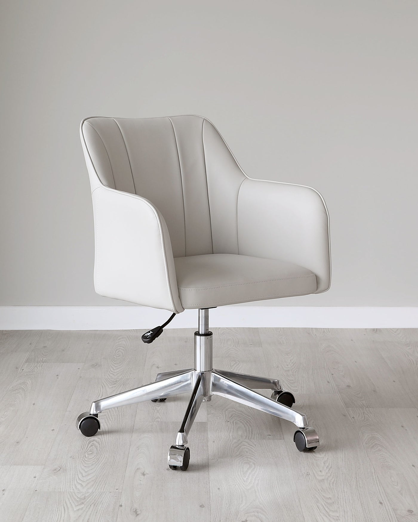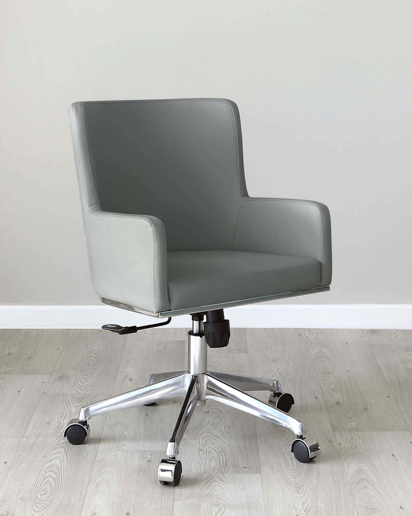 - What factors should I consider when choosing a grey office chair?When choosing a grey office chair, consider the shade - lighter greys brighten a space, while darker greys offer a sophisticated look. Think about the material: leather or faux leather is easy to clean, while fabric offers breathability. Prioritise adjustability: look for features like lumbar support, adjustable height, and armrests to ensure optimal comfort and posture. Swivel functionality and sturdy wheels are essential for easy movement. Finally, consider the chair's base - metal or chrome offer durability and style, complementing a modern office setting. Don't forget to check dimensions to ensure it fits your workspace comfortably. For more information visit our blog post.