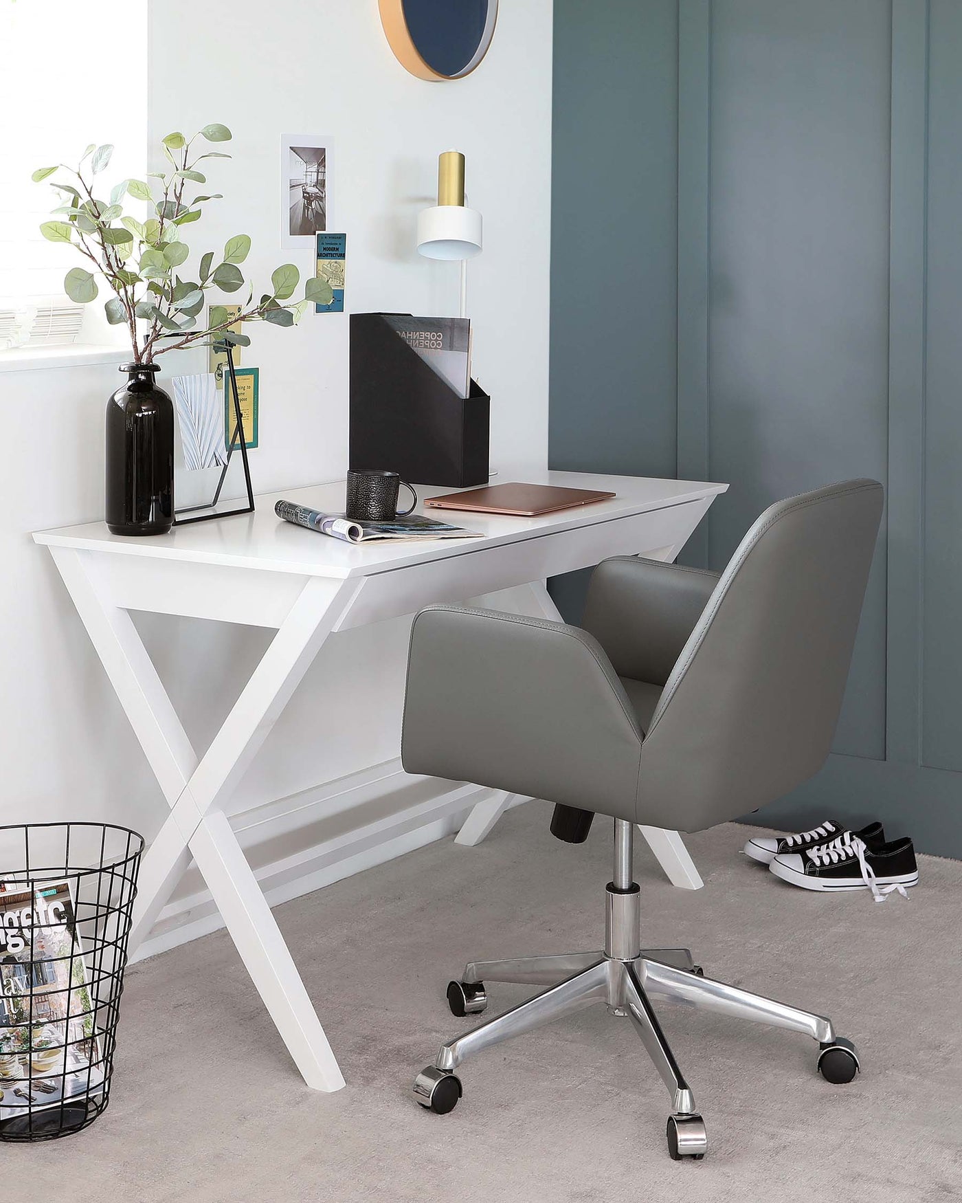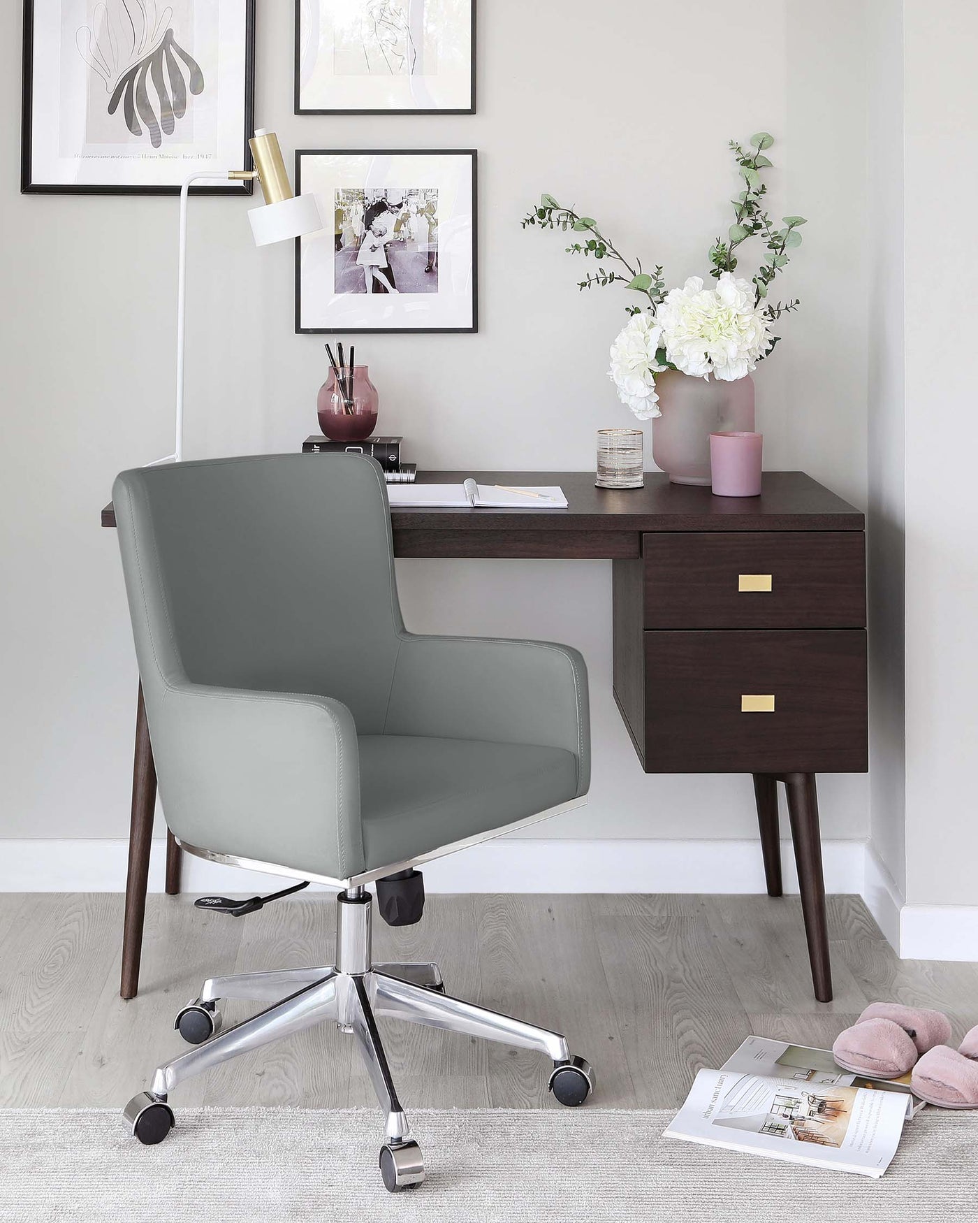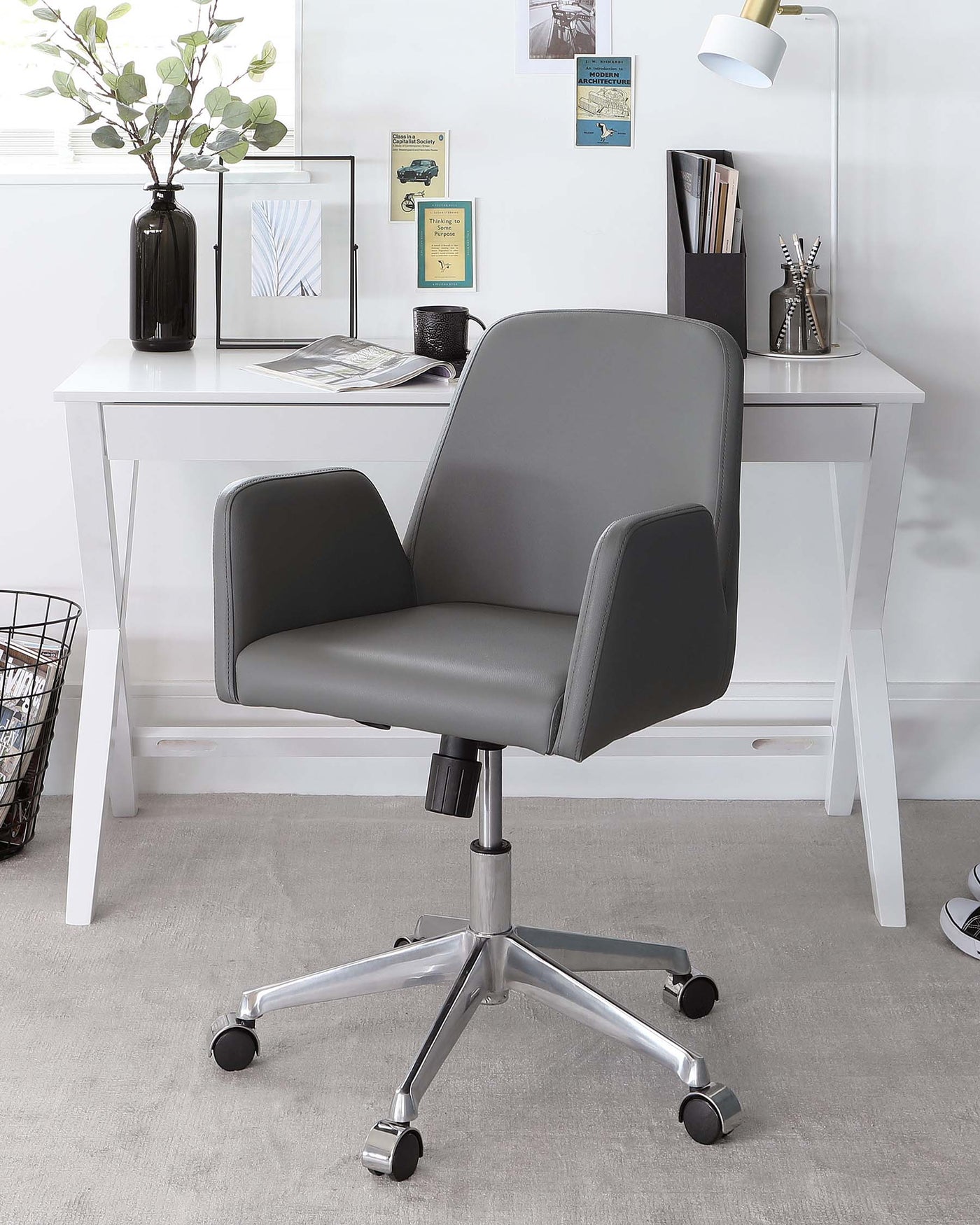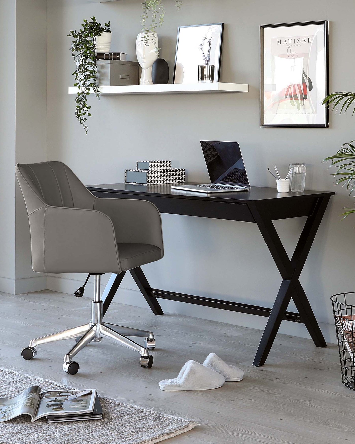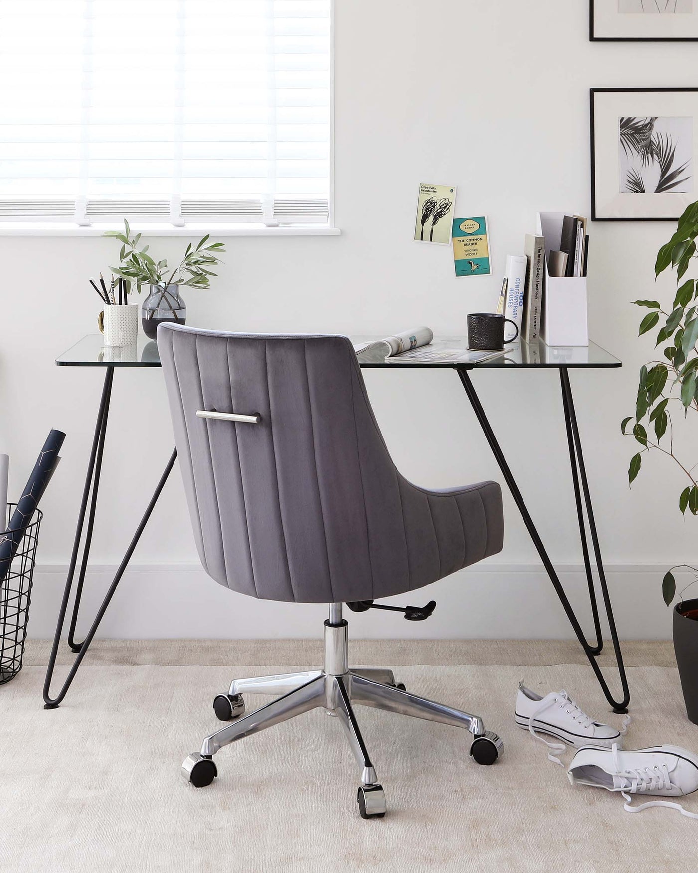 Whether you prefer a statement piece like the plush velvet Juliana with its modern metallic accents, or a simple yet stylish option like the Levi, our grey office chair range offers a variety of choices for your home office needs.
