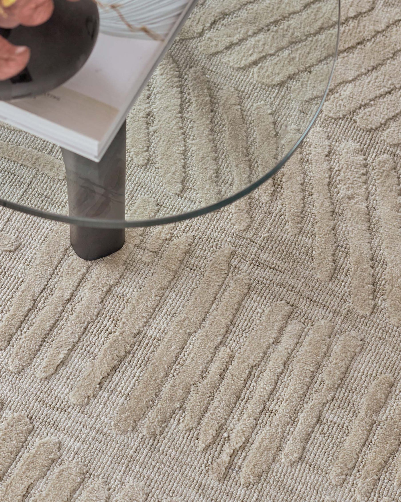 Our collection also features sculpted wool rugs, crafted from 100% New Zealand Wool, offering both texture and comfort. If you prefer a touch of opulence, consider rugs with high shine metallic yarn that provide an elegant focal point.