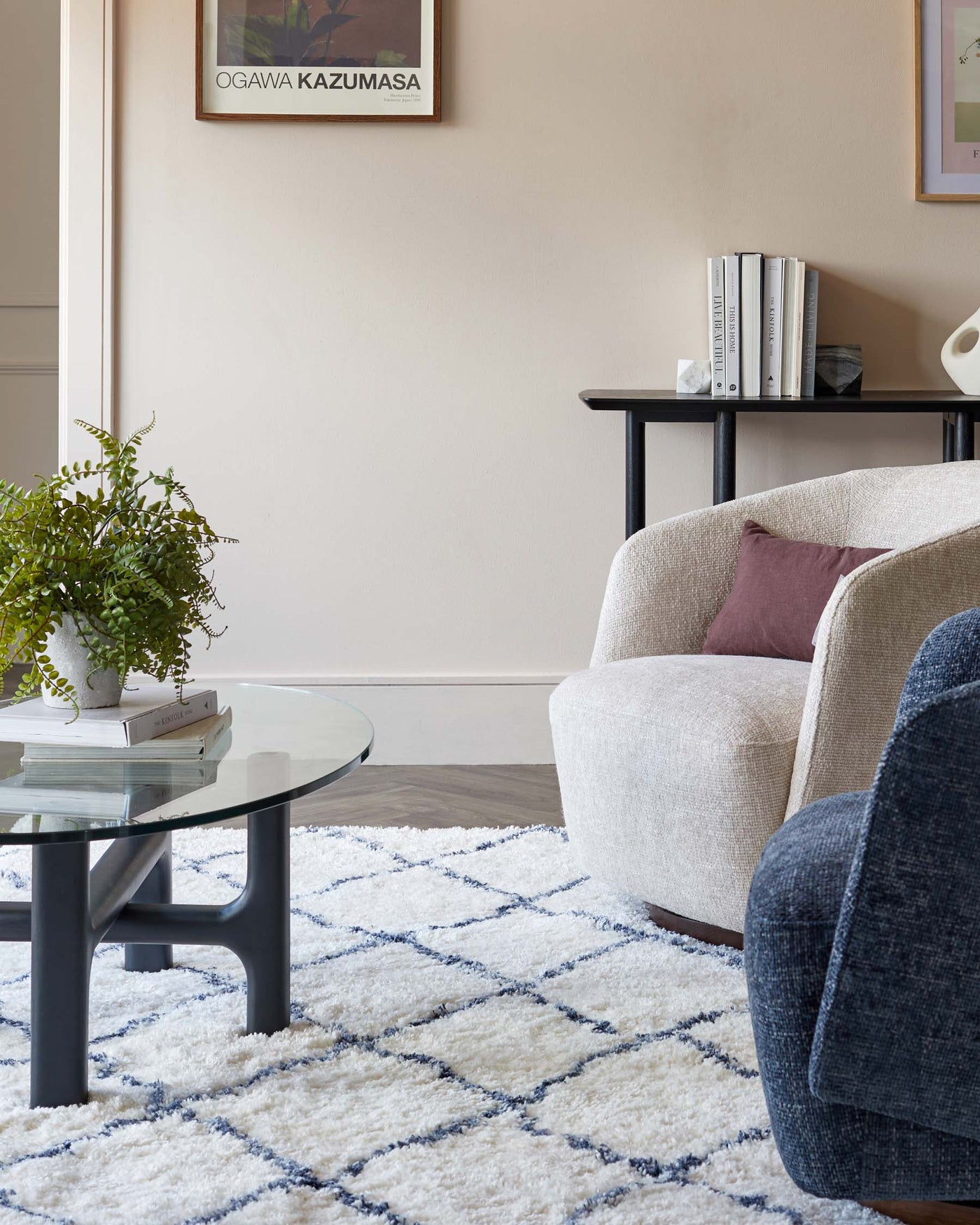 - What should I consider when choosing a large rug?When choosing a large rug, consider the room size and furniture placement. Ensure the rug is proportionate to the room, leaving a border of exposed flooring. In a living room, the rug should be large enough to accommodate the front legs of sofas and chairs. For dining areas, it should extend beyond the table and chairs when pulled out. Think about the rug's material and its practicality; synthetic rugs are often more stain-resistant. Choose a colour and pattern that complements your existing decor - a solid colour creates a calm backdrop, while a patterned rug adds visual interest. For more information visit our blog post.
