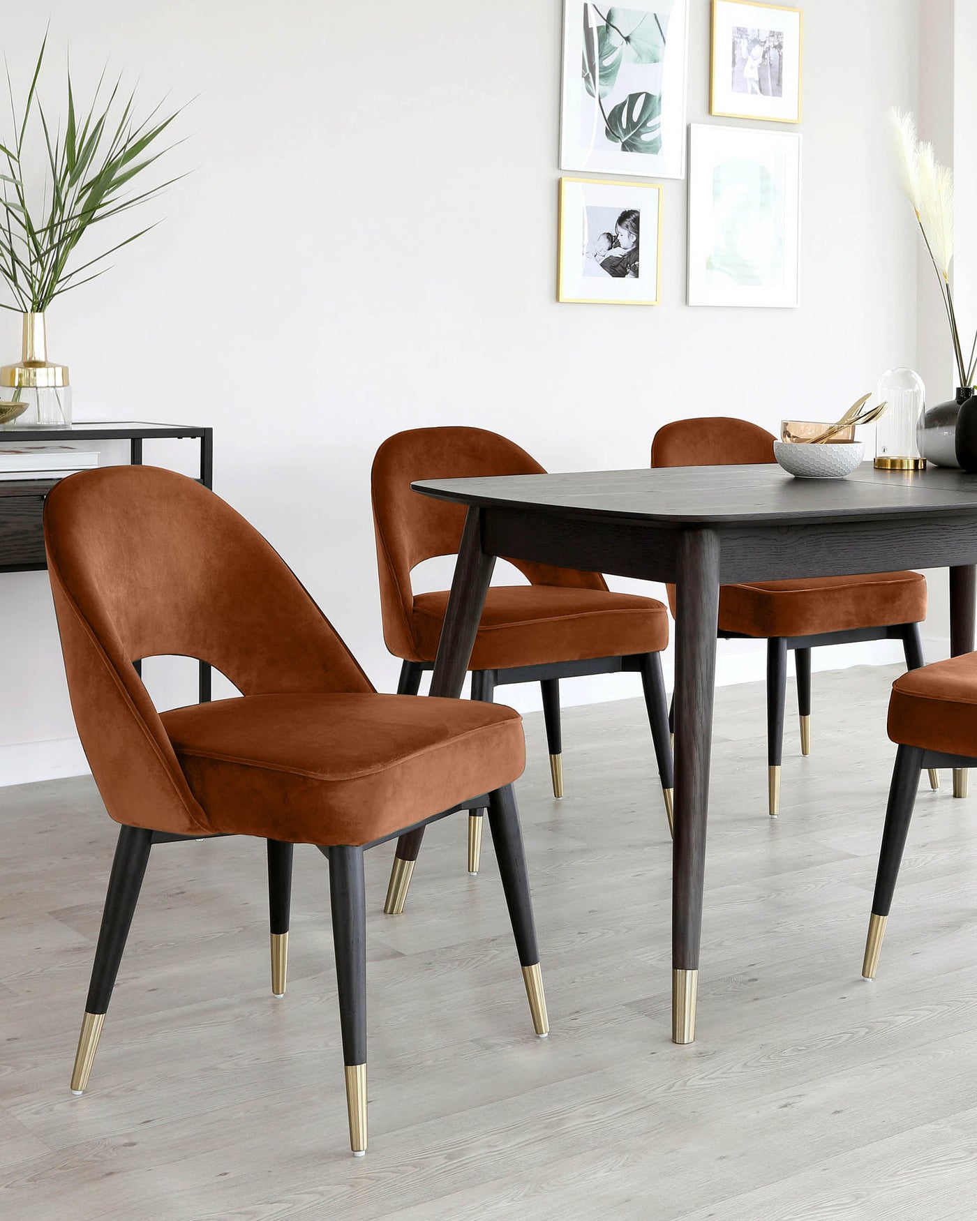 With a palette that spans from subtle neutrals to vibrant rust, these chairs not only provide a comfortable spot to enjoy your meals but also contribute to the overall aesthetic of your dining room.