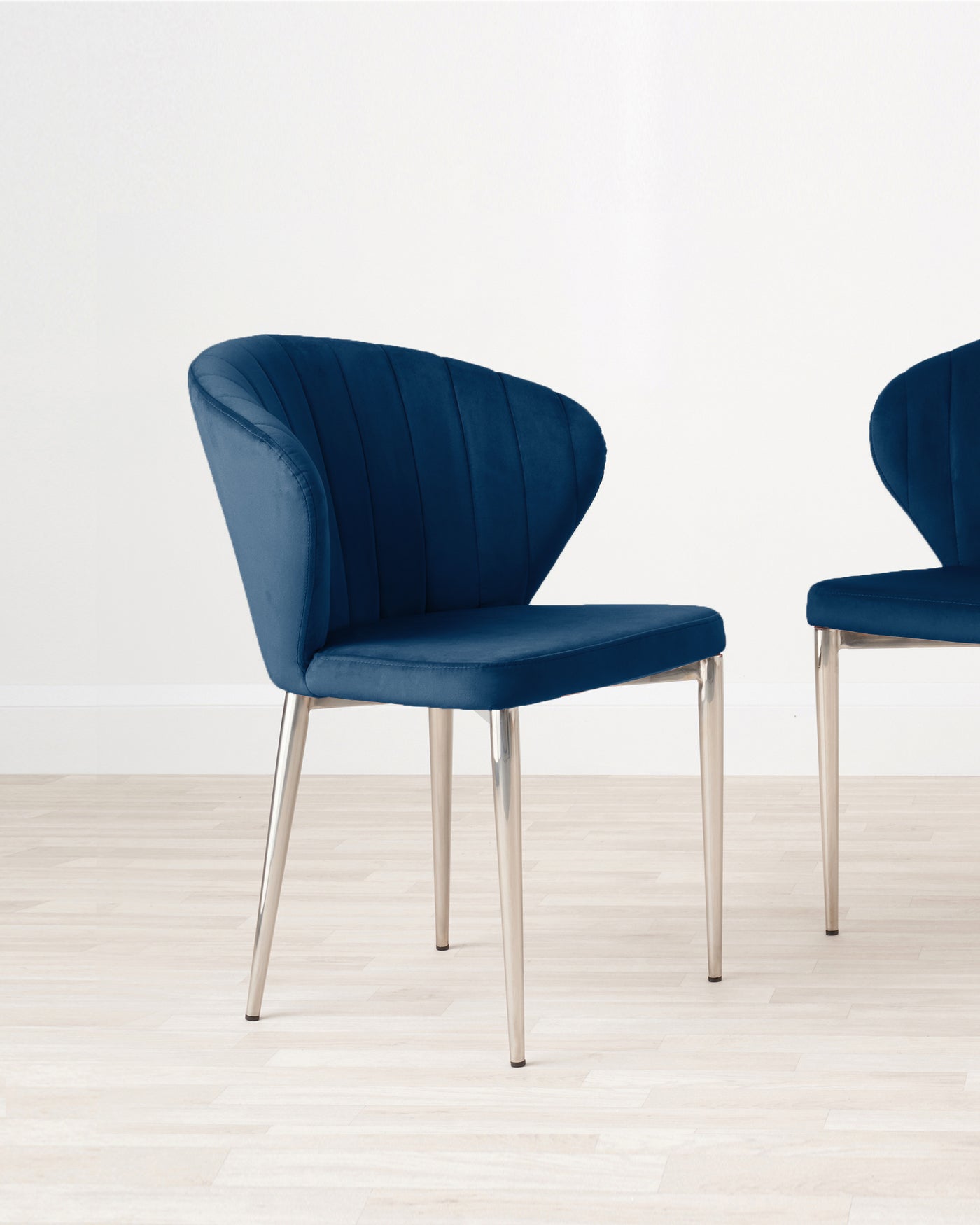 Additional features such as supportive backrests, generous cushioning, and brushed metal leg caps prioritise comfort without compromising style. For those seeking a more versatile design, we also offer armchair models, perfect for end-of-table placement. This range presents a diverse selection of velvet chairs, each designed to enhance your dining experience.