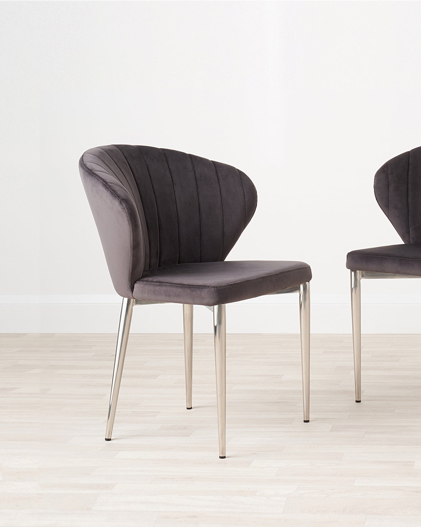 The range features various hues, from neutral champagne to striking dark grey and burnt orange, giving you a wide choice for coordinating with your existing colour scheme. The chairs have been designed with attention to detail, featuring aspects such as chevron stitch detail, panel detailing, and cut-out backrests.