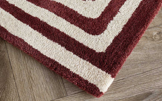 Transform your space with the Abstract Swirl deep red wool small rug - a bold piece that brings instant warmth and artistic flair to any room. Hand-tufted from 100% wool with a sculpted high/low pile, this vibrant rug creates captivating depth and texture. Perfect beneath a coffee table or beside your bed, its rich red swirls make an unforgettable statement.