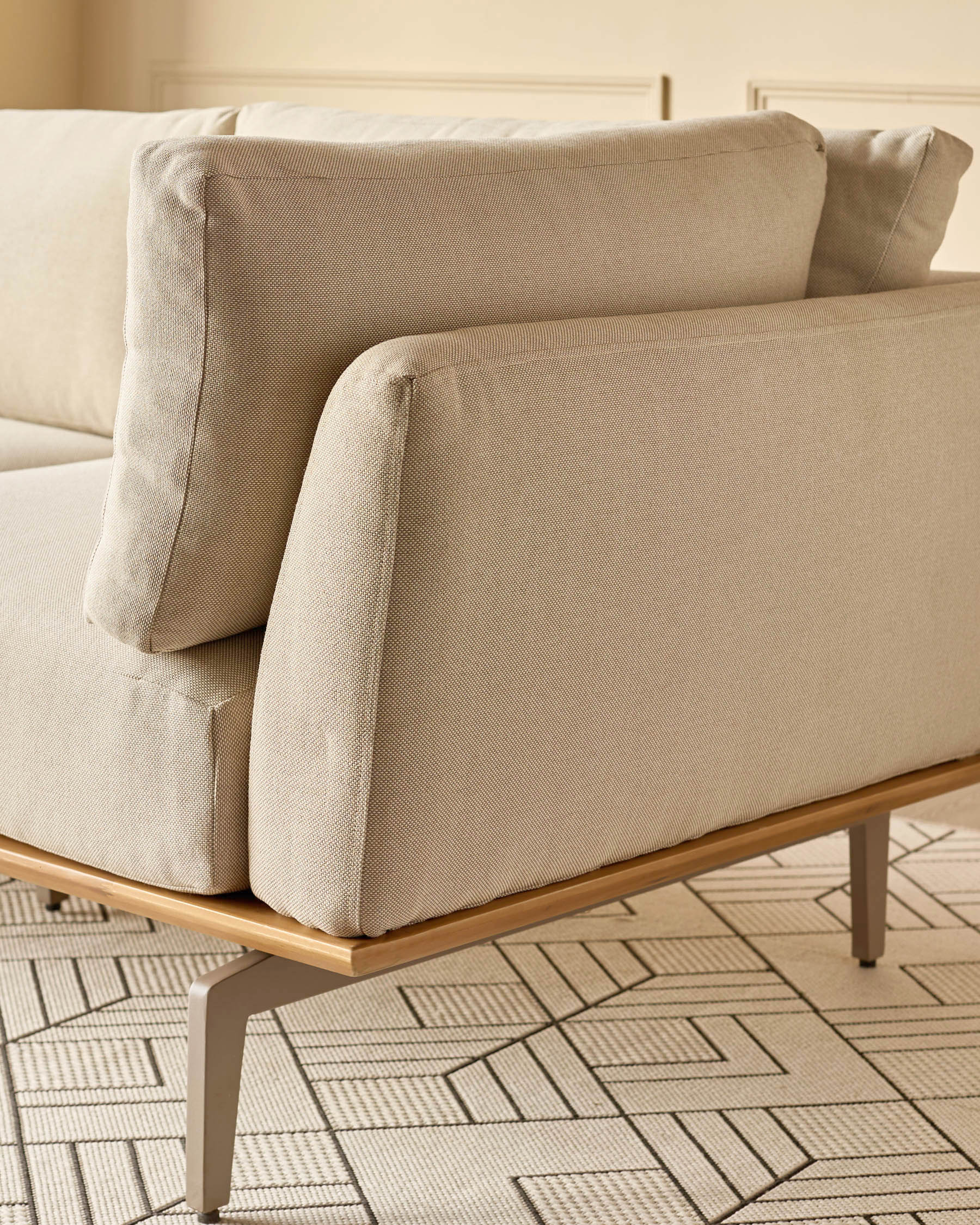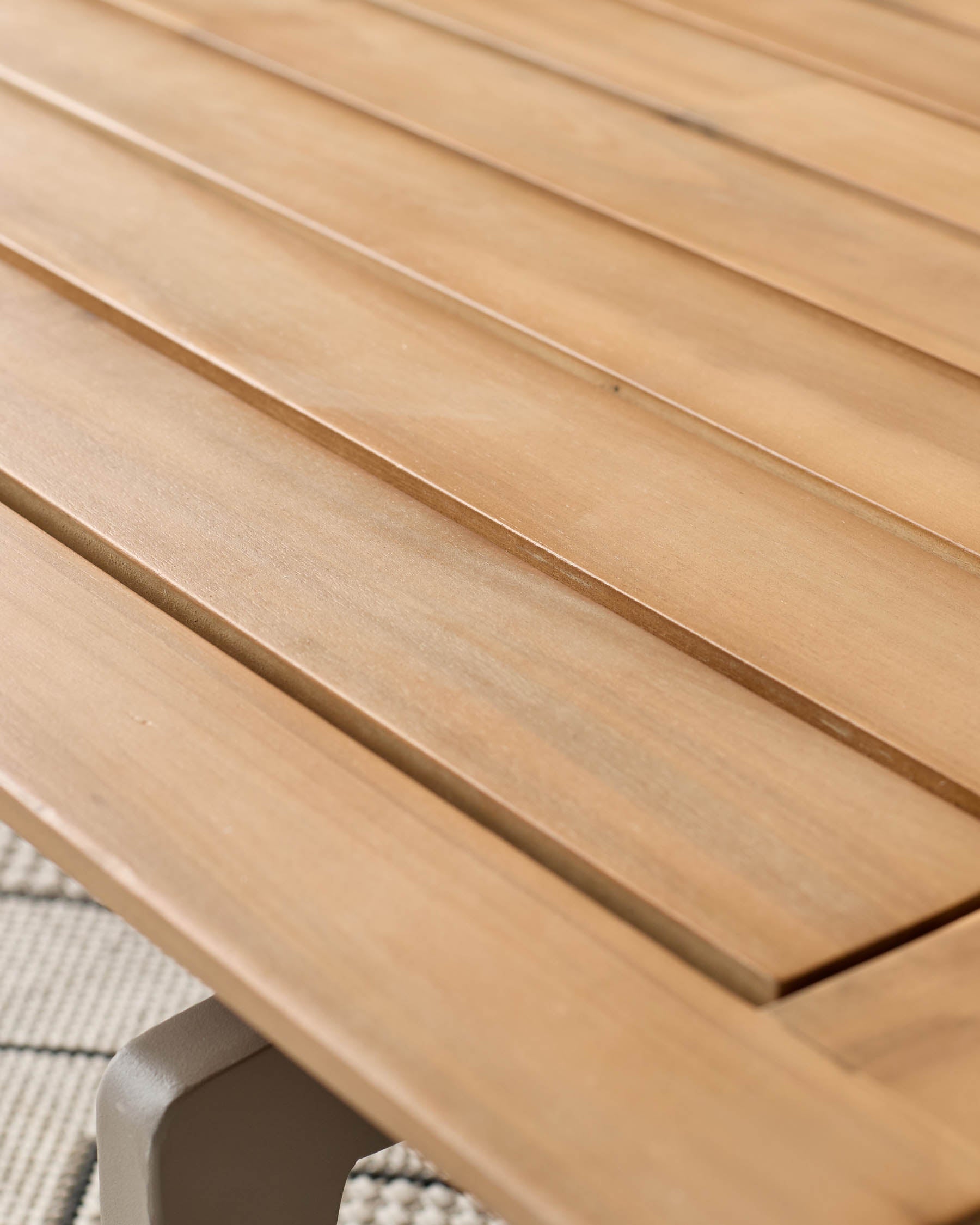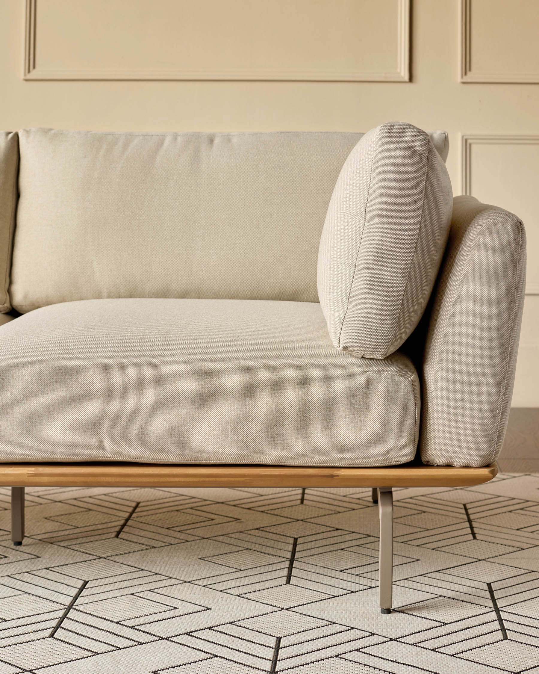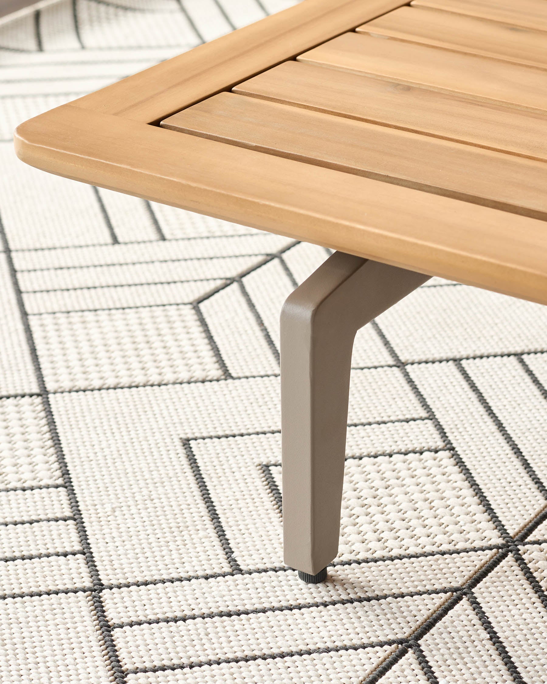Transform your garden into an outdoor living room with the Alvaro natural left hand corner bench set. This contemporary design combines classic woven textures with warm acacia wood, creating a sophisticated space for relaxed entertaining. The sculptural corner bench curves around a matching coffee table, while built-in side tables keep refreshments within reach during long summer gatherings.