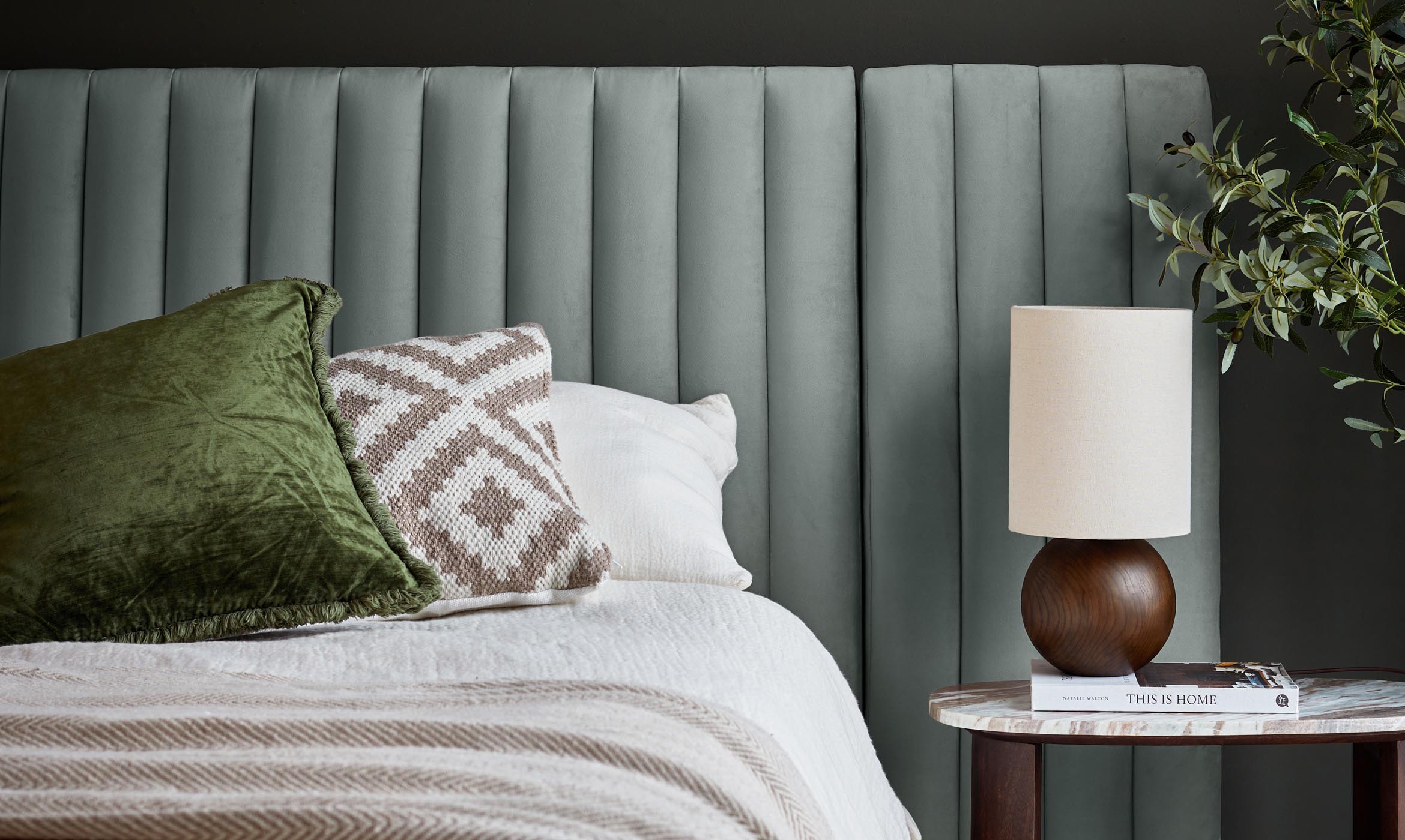 - Sage green recycled velvet upholstery