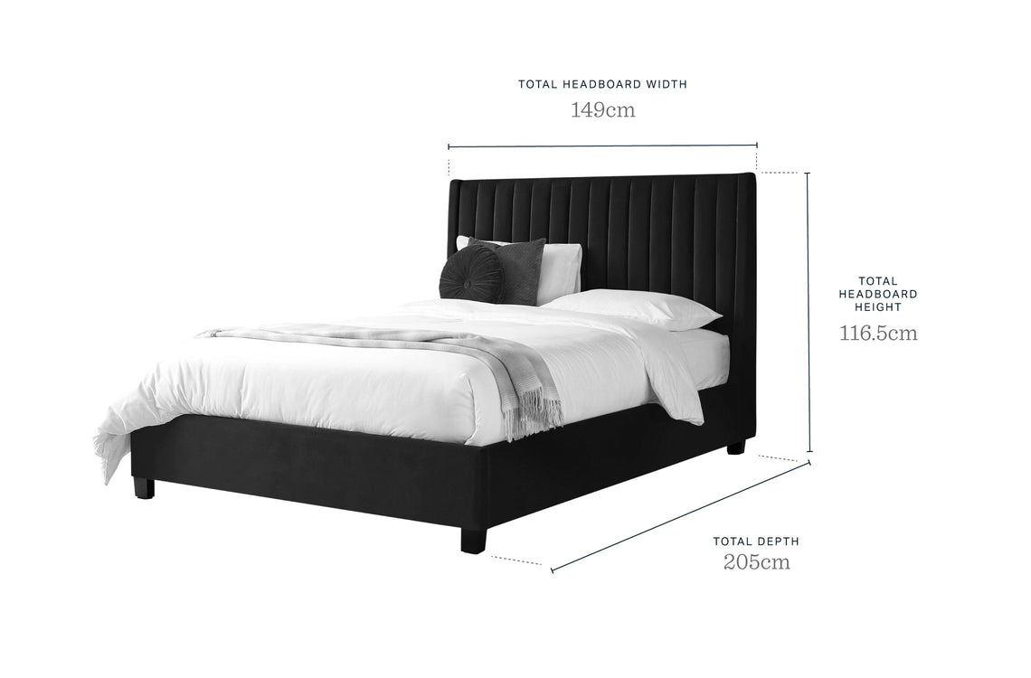 The Amalfi olive green velvet double ottoman storage bed brings sophisticated storage solutions to your bedroom. Upholstered in soft recycled velvet with a distinctive vertically ribbed headboard, this bed combines style with practicality. The spacious ottoman base lifts effortlessly with hydraulic pistons, revealing generous storage for bedding and blankets while maintaining a streamlined silhouette.