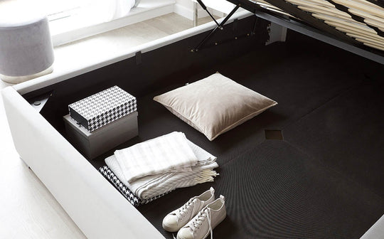 The Amalfi champagne velvet king size ottoman storage bed brings sophisticated comfort to your bedroom with its striking vertically ribbed headboard that stands over 126cm tall. Upholstered in sumptuous champagne velvet, this designer piece combines statement style with clever storage. Powerful hydraulic pistons reveal a spacious compartment beneath, perfect for bedding and seasonal items, whilst sprung slats ensure exceptional mattress support.