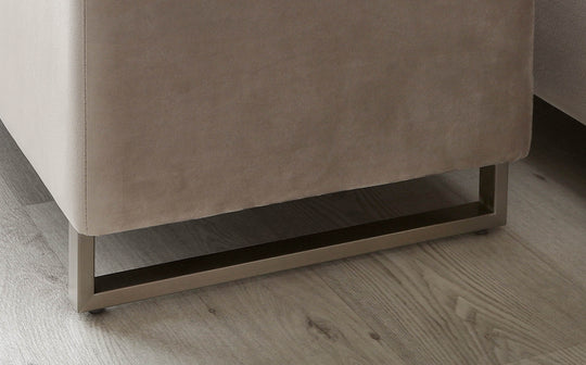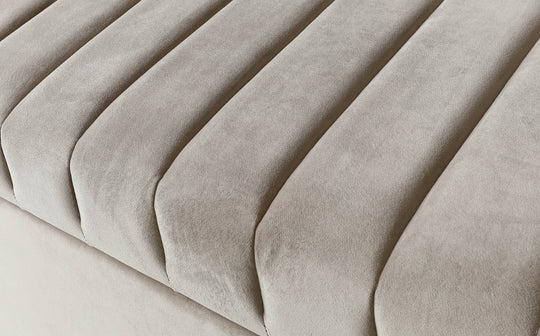 - Soft champagne velvet upholstery with ribbed cushioned top