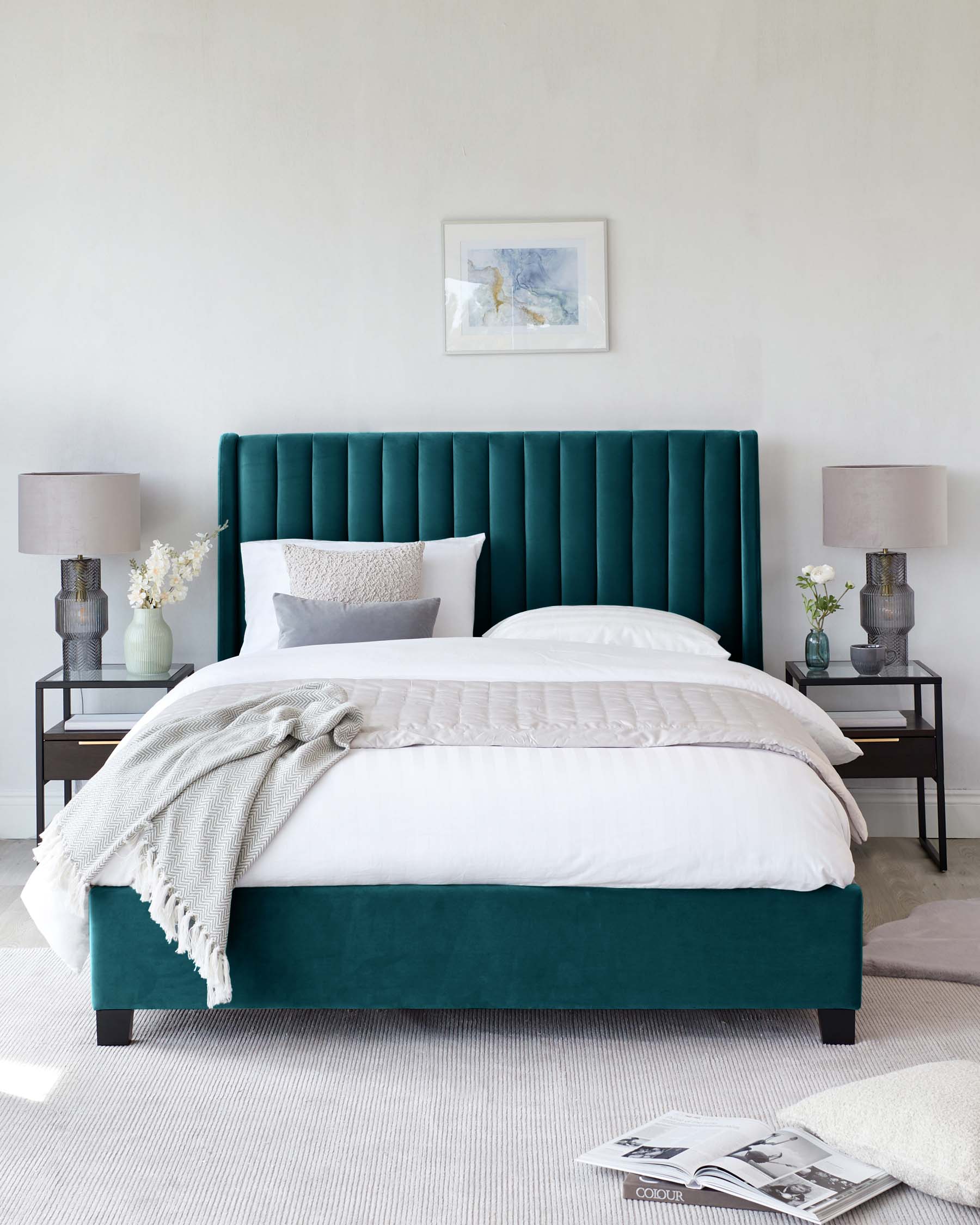 Discover our bestselling Amalfi bed collection. An ottoman storage bed powered by hydraulic pistols, wrapped in premium velvet or fabric material, with a cushioned headboard with quilted stitching for a comfortable and aesthetic look.