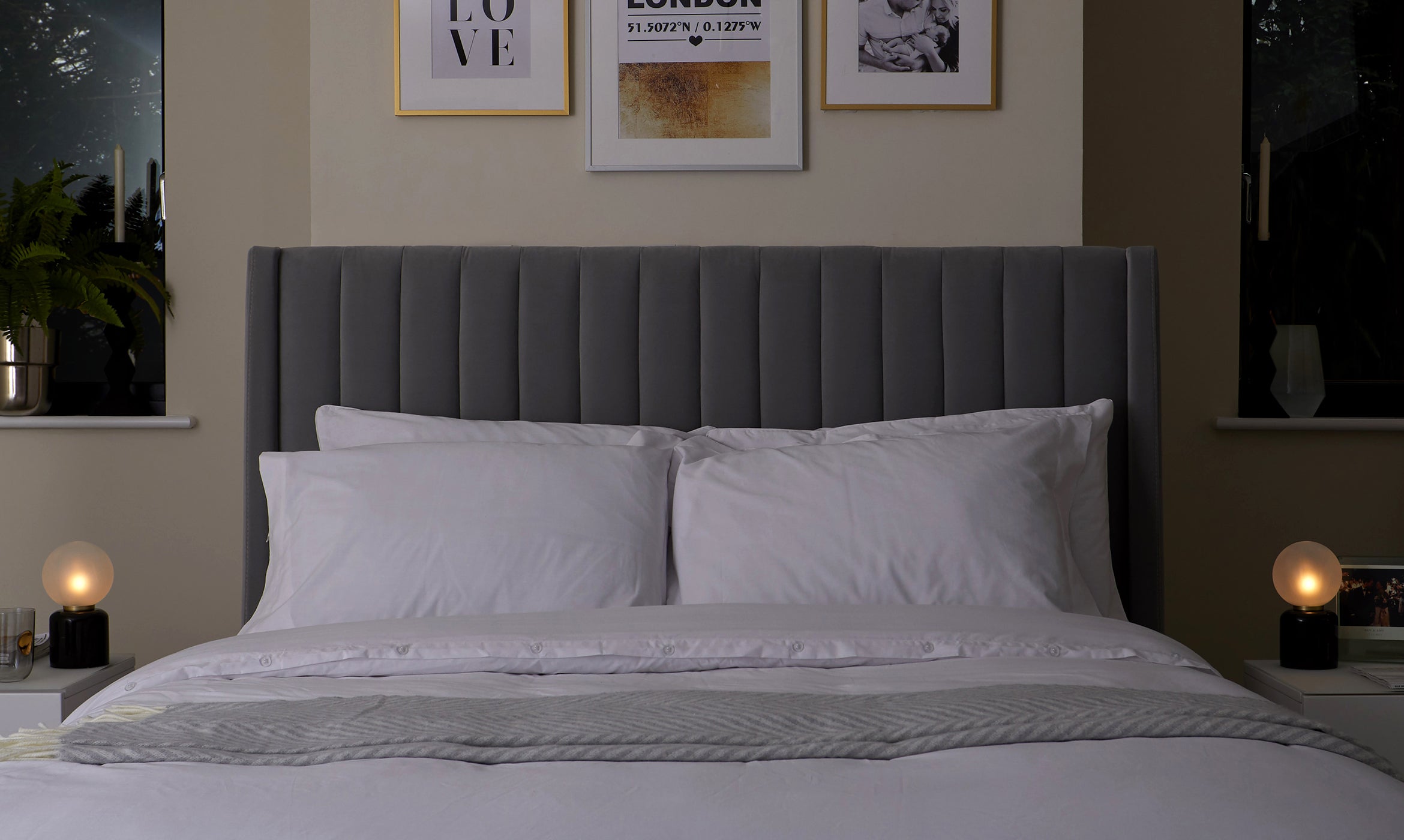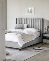 - Vertically ribbed headboard for subtle texture