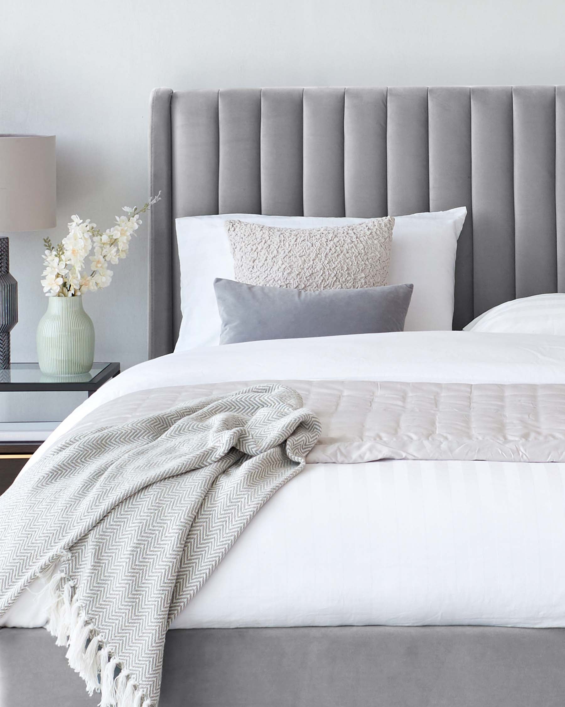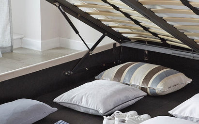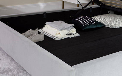 Make the most of your bedroom with the Amalfi super king size ottoman storage bed. Upholstered in luxuriously soft light grey matt velvet, this thoughtfully designed bed combines contemporary elegance with clever storage. The vertically ribbed headboard adds subtle texture, while the spacious ottoman compartment, accessed via durable hydraulic pistons, keeps bedding and essentials beautifully organised beneath your mattress.