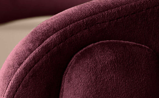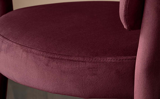 The Anya plum velvet dining chair brings together sculptural curves and sustainable style in one beautifully crafted piece. Upholstered in rich recycled velvet, its deep plum tone and wrap-around backrest create an inviting presence at your dining table or as an accent chair in your bedroom or dressing space.