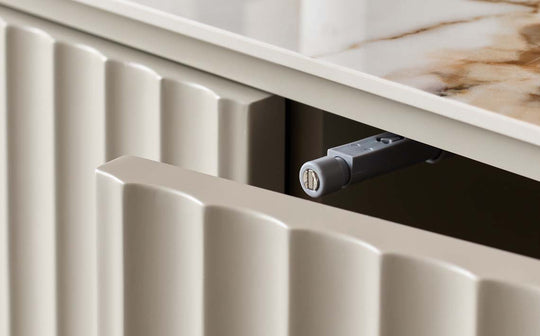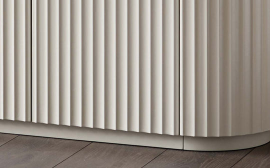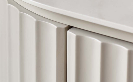 The Austin natural ceramic sideboard brings sculptural sophistication to your storage needs. Its luxurious stone-effect ceramic top resists heat and scratches, while three spacious compartments behind pill-shaped doors keep everything organised. The fluted base adds textural interest, making this piece equally at home in your dining room, hallway or living space as a striking media unit.