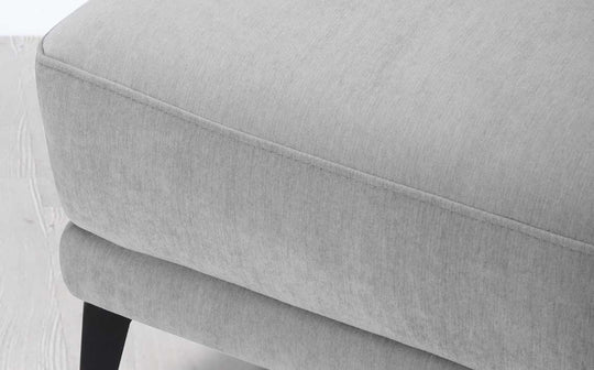 The Brooks light grey fabric footstool brings refined comfort to your living space with its clean rectangular silhouette and distinctive pleated detailing. Perfect for putting your feet up after a long day, this versatile piece works beautifully paired with any sofa style. The combination of resilient foam and fibre filling, supported by zig-zag springs, ensures lasting comfort that maintains its shape over time.