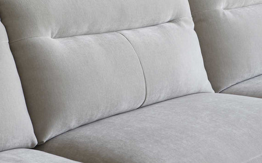 The Brooks light grey left hand corner chaise sofa brings contemporary comfort to compact spaces. Its clean lines and distinctive pleated detailing create visual interest, while the extended chaise section invites you to stretch out after long days. Perfect for smaller living rooms where every centimetre counts, this 3-4 seater maximises both style and seating.