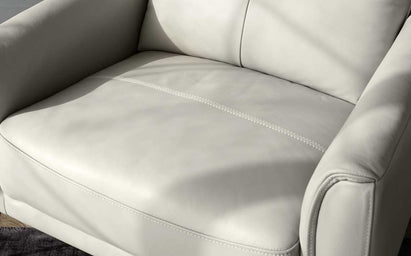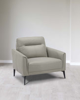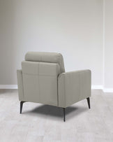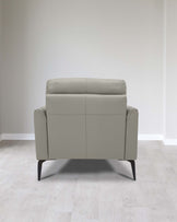 Thoughtfully designed with clean lines and subtle curves, the Brooks light grey leather armchair brings sophisticated comfort to any room. Upholstered in sumptuously soft faux leather with distinctive pleated detailing, this contemporary piece offers the perfect spot for reading, relaxing or conversation. The light grey tone and sleek metal legs create an effortlessly modern look.