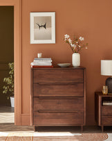 Thoughtfully crafted from sustainably sourced mango wood, the Bryce chest of drawers brings organic warmth and sophisticated storage to your bedroom. Its rich, dark finish and clean lines create a bold yet timeless piece that works beautifully in bedrooms, hallways or living spaces. Four spacious drawers offer generous storage for clothing, linens or everyday essentials.