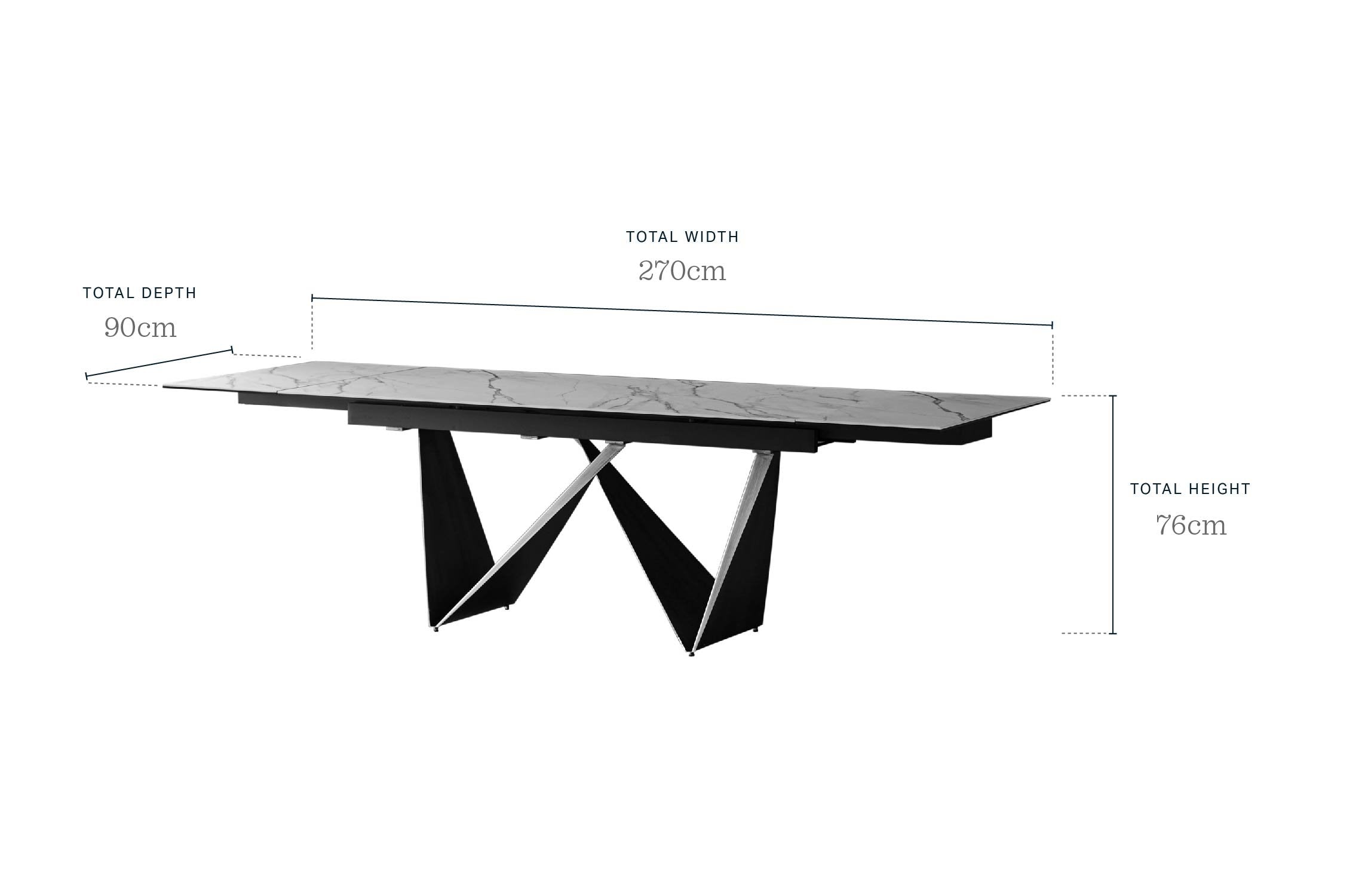 - Size: W: 180-270cm x D: 90cm x H: 76cm