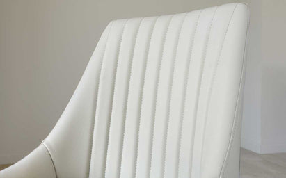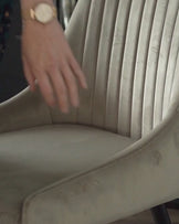 - Vertical detailing and subtle curves on chairs