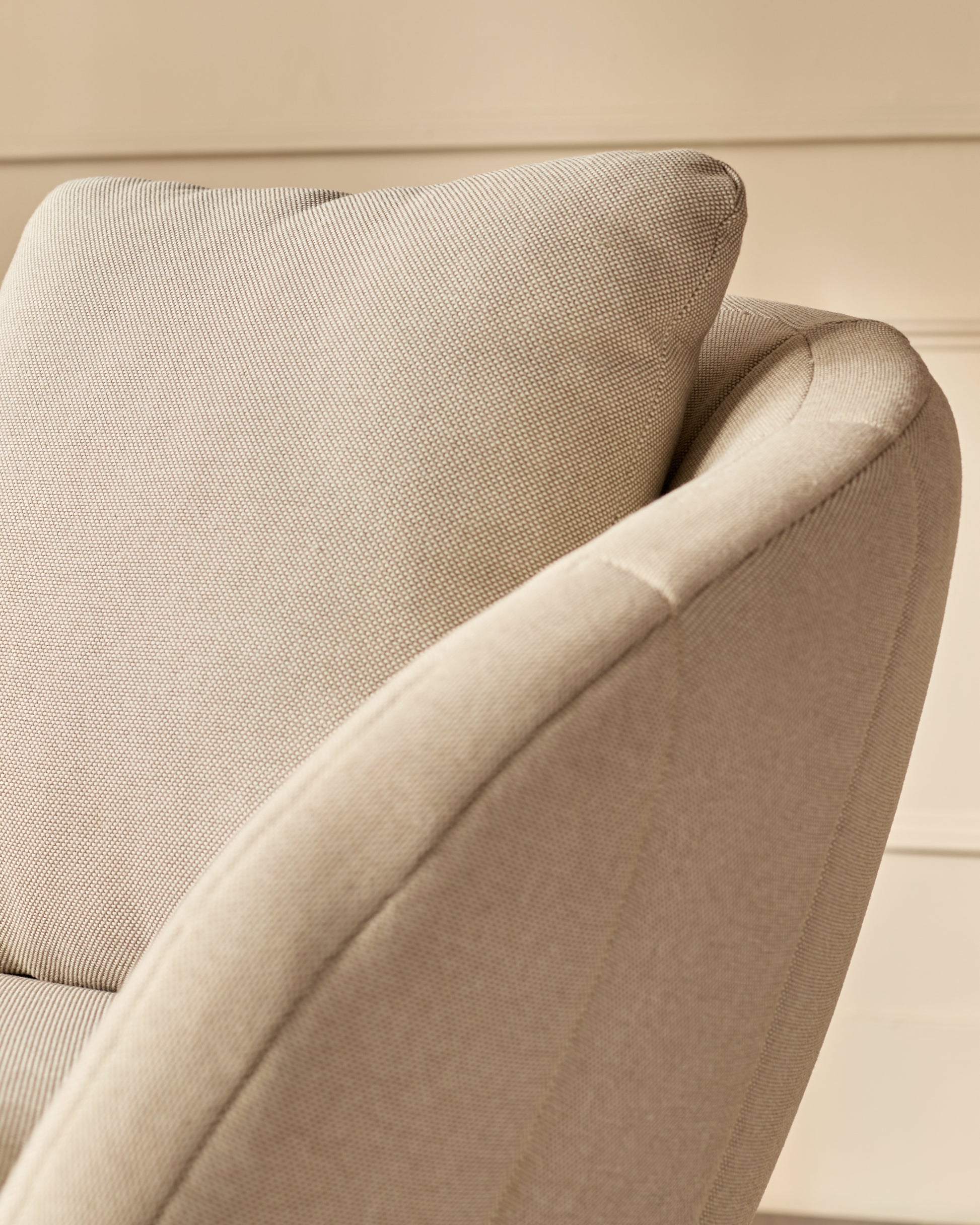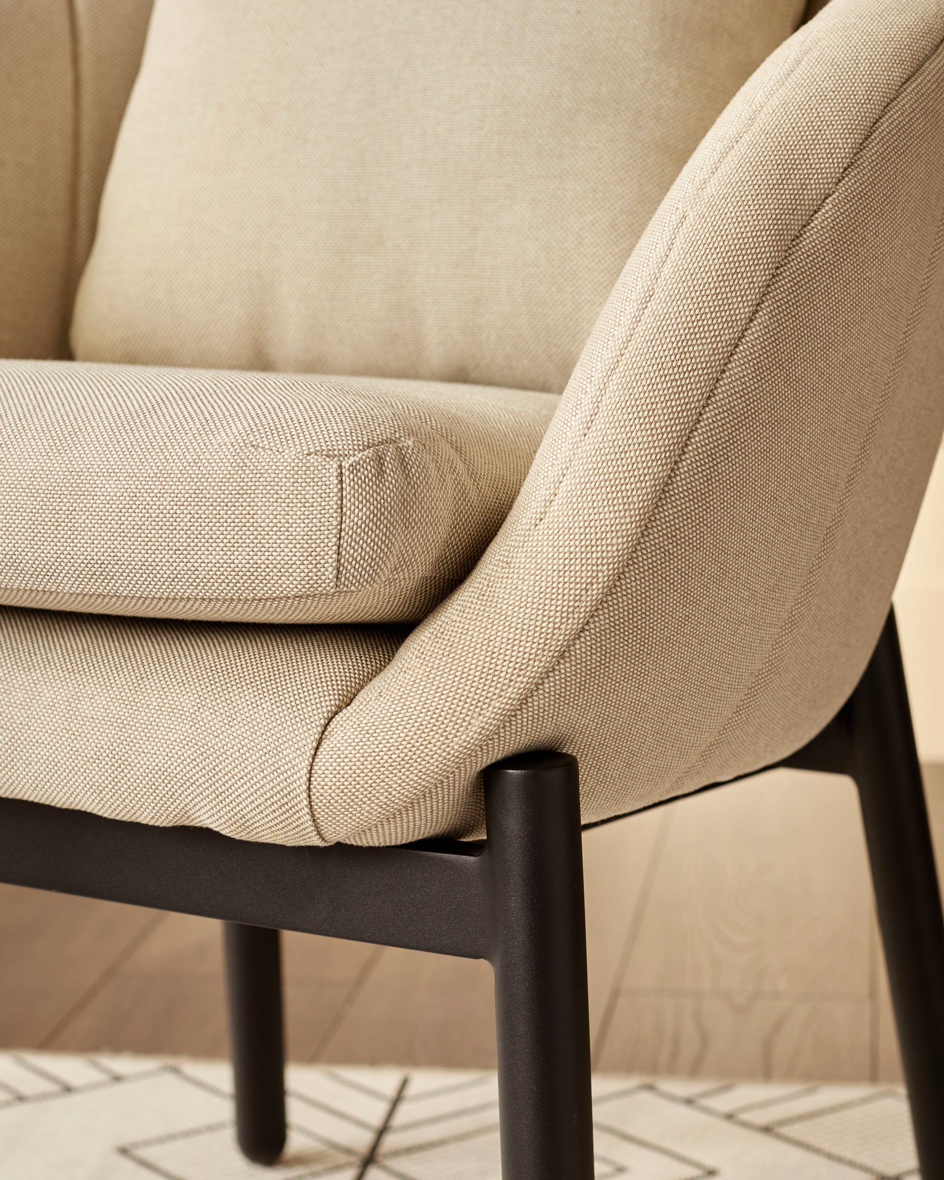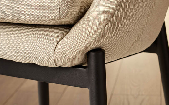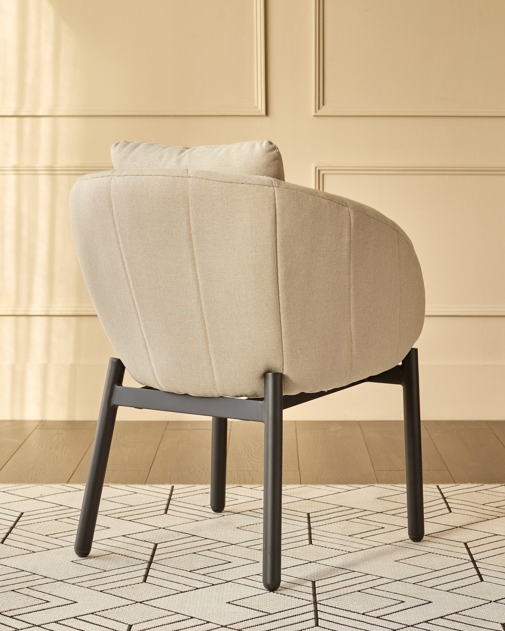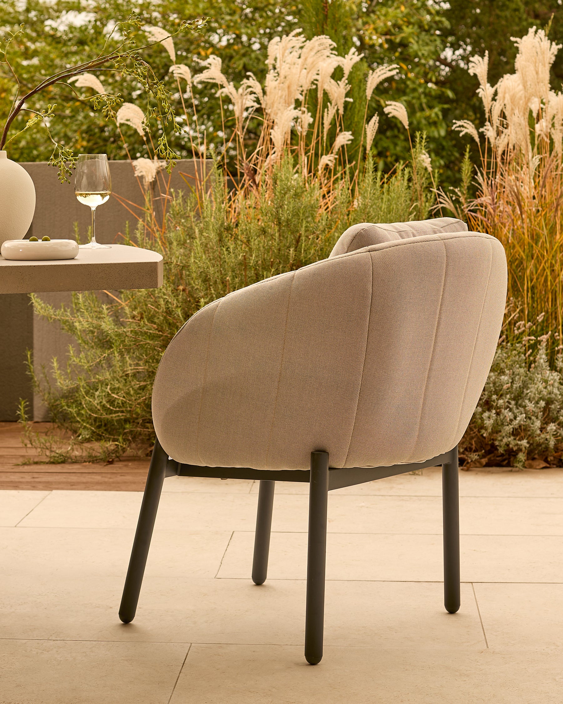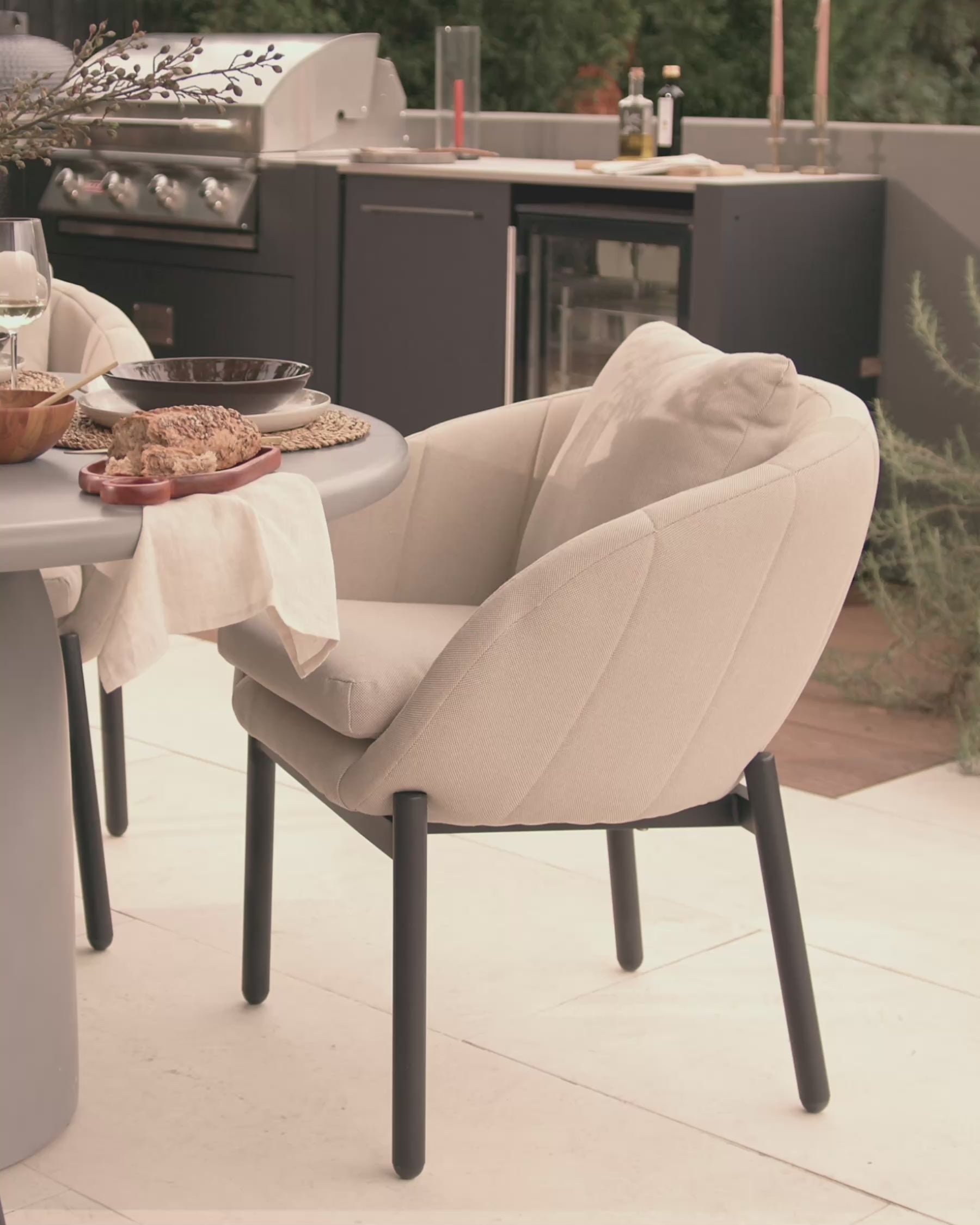 The Camilo natural garden dining chair brings indoor comfort to outdoor spaces with its sculptural design and generous cushioning. Crafted with weather-resistant natural weave fabric, this beautifully textured chair offers lasting support for long, leisurely meals. The gently curved back and plush seat cushions create an inviting spot that works perfectly with contemporary ceramic or natural wood tables.