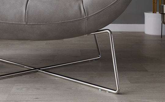 Create your perfect retreat with the Canio accent chair. Sumptuously padded and wrapped in warm grey faux leather, this statement piece brings sophisticated comfort to any corner. The curved tub silhouette cradles you beautifully, while quilted detailing adds textural interest. A brushed stainless steel base provides contemporary contrast, making this the ideal spot for morning coffee or evening unwinding.