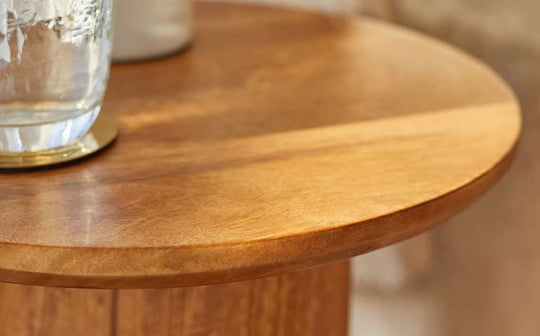 The Cara light mango wood side table brings natural warmth and effortless style to any corner of your home. Its round top and sculptural pedestal base create a perfect perch for morning coffee, evening reads, or that statement lamp you've been meaning to showcase. Sustainably sourced and exclusively designed, this versatile piece works beautifully beside sofas, beds, or tucked into reading nooks.