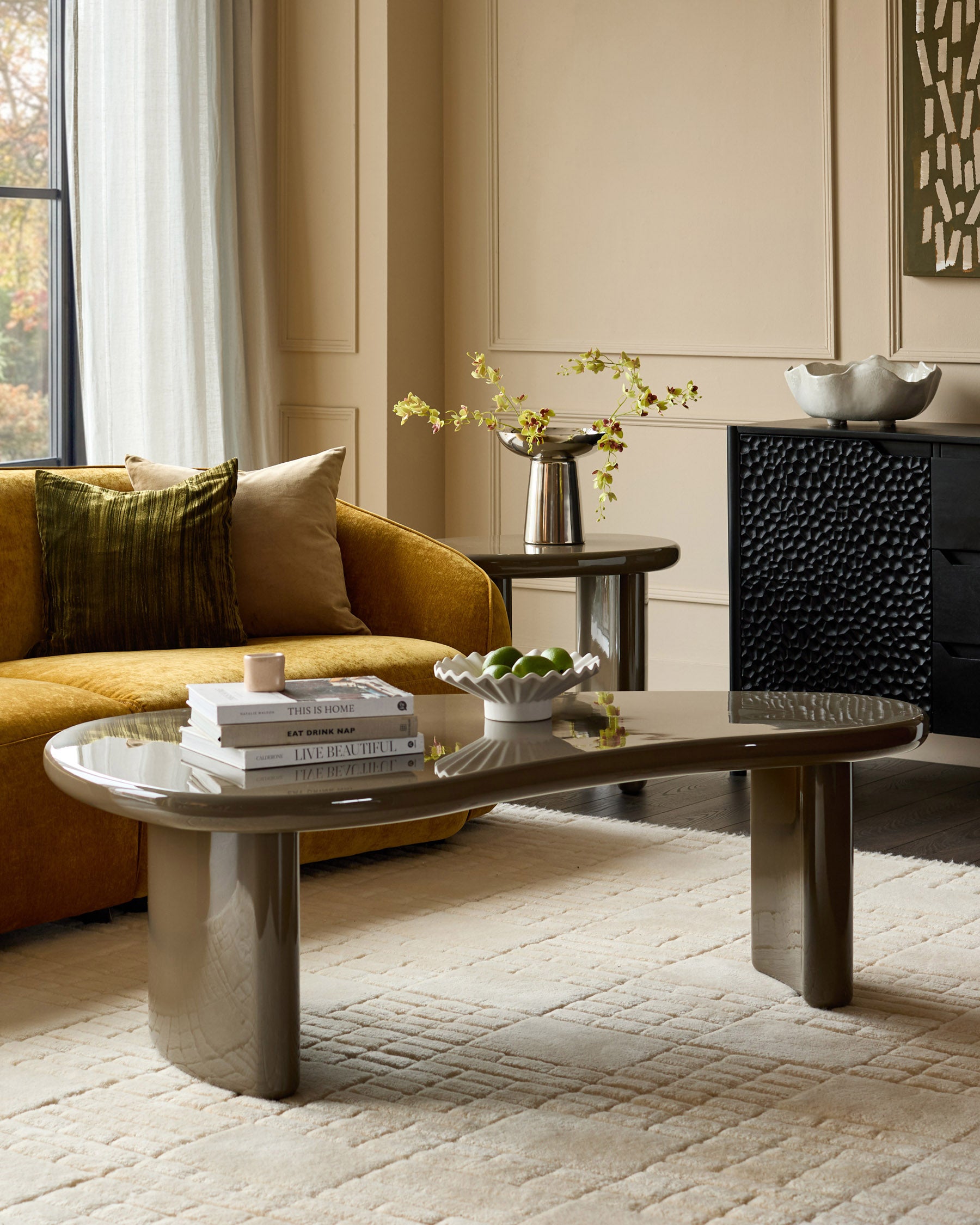Designed to anchor a space effortlessly, the Carmela Coffee Table is where function meets beauty. Its organic, sculptural silhouette brings a sense of movement to the room, softening layouts while still making a confident design statement. Finished in a premium olive green high gloss, the surface reflects light with subtle depth, introducing a grounded, contemporary richness that feels both modern and timeless. Thoughtfully designed for the way you actually live, Carmela is tough enough for real life yet refined enough for your best moments. The smooth, high-gloss finish is easy to maintain, making it ideal for everyday living, spontaneous gatherings and slow, relaxed evenings at home. Perfect for contemporary, modern or boutique-style interiors, this coffee table transforms the space around it, grounding your seating area, inviting conversation and elevating the overall mood of the room. Built to last, made to live with.
